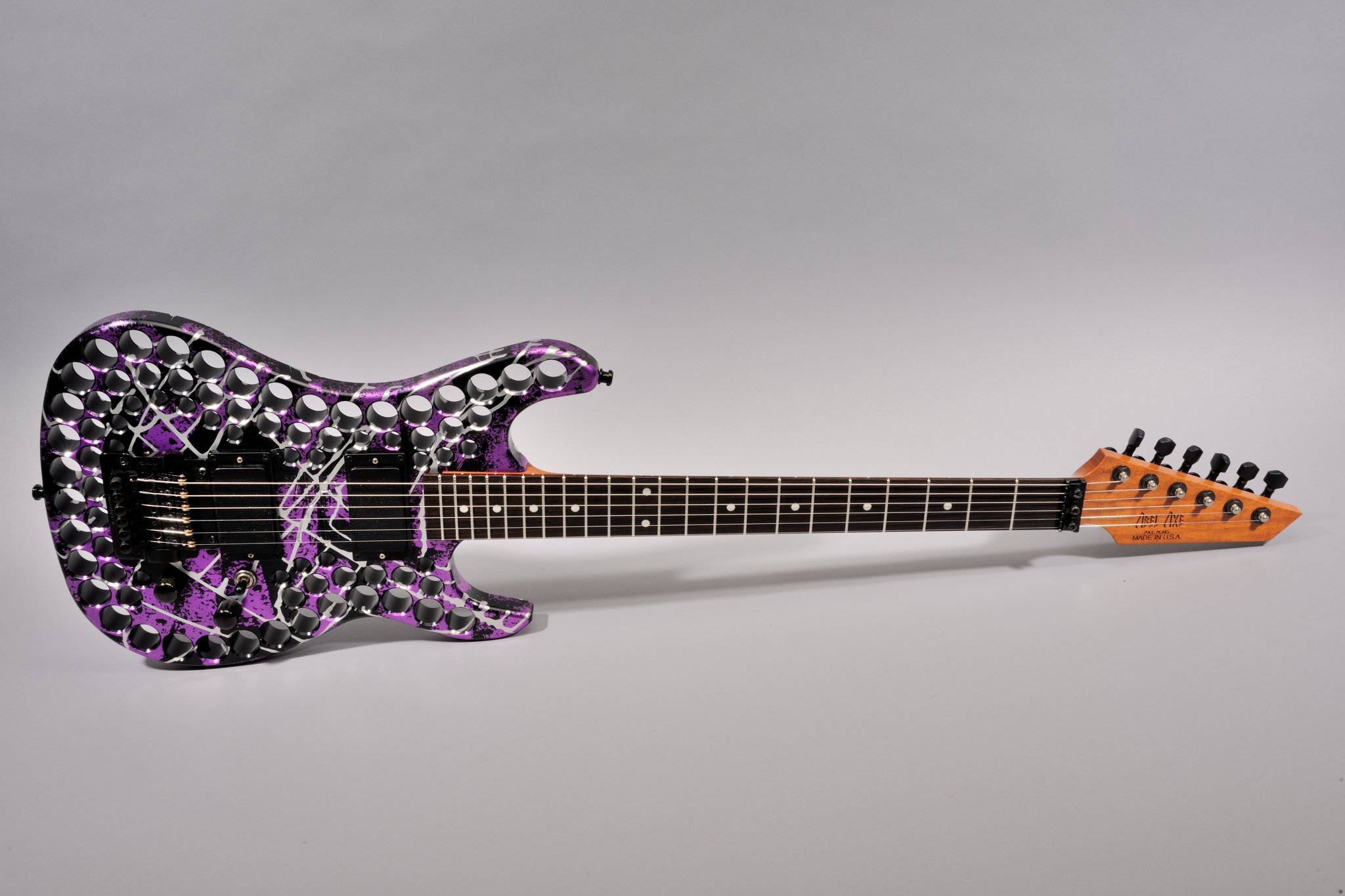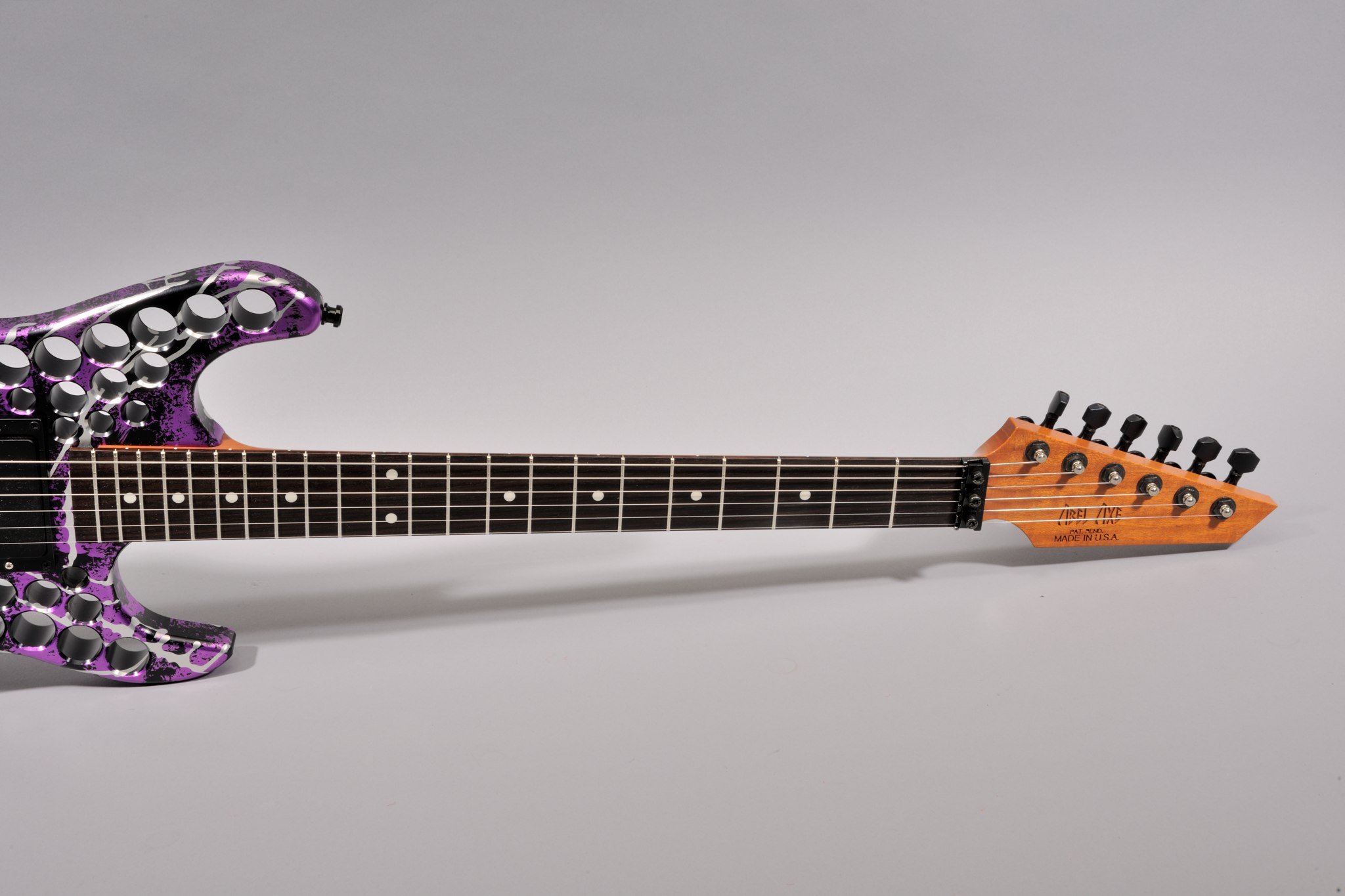 Abel Axe 1995 Aluminum Body Strat Anodized in Purple/Black/Silver Splatter.