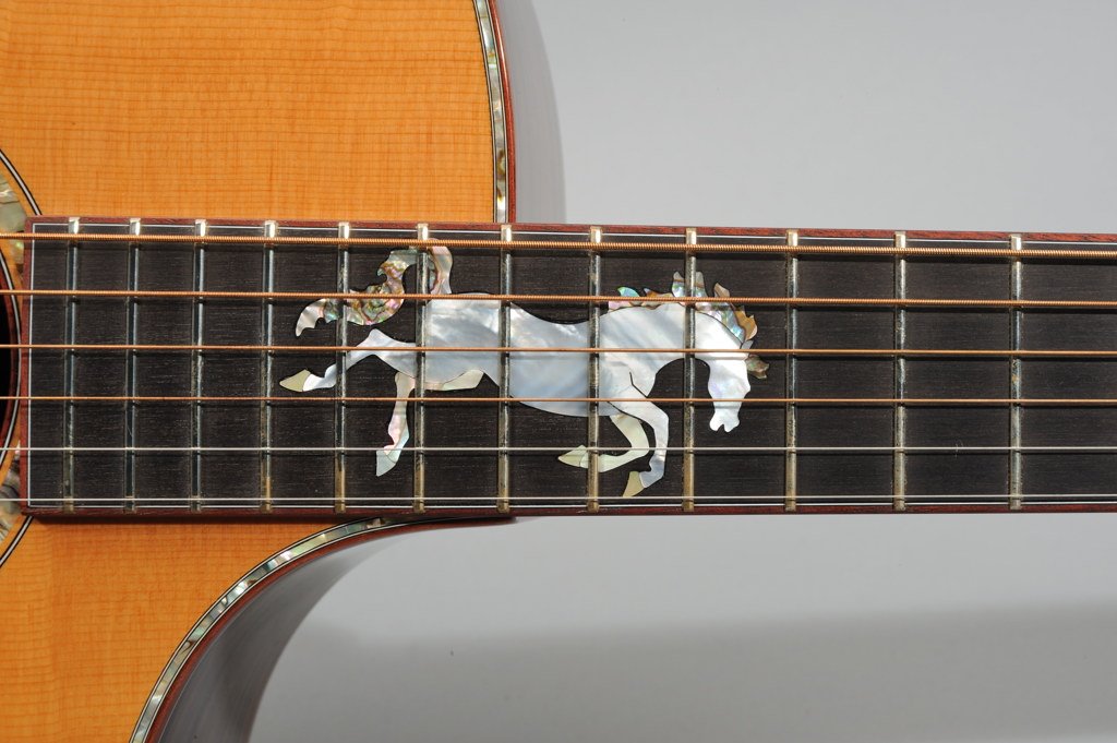 No Dots Ebony Fingerboard with 'Stallion' in MOP and Abalone Inlays between 12th & 17th Fret.