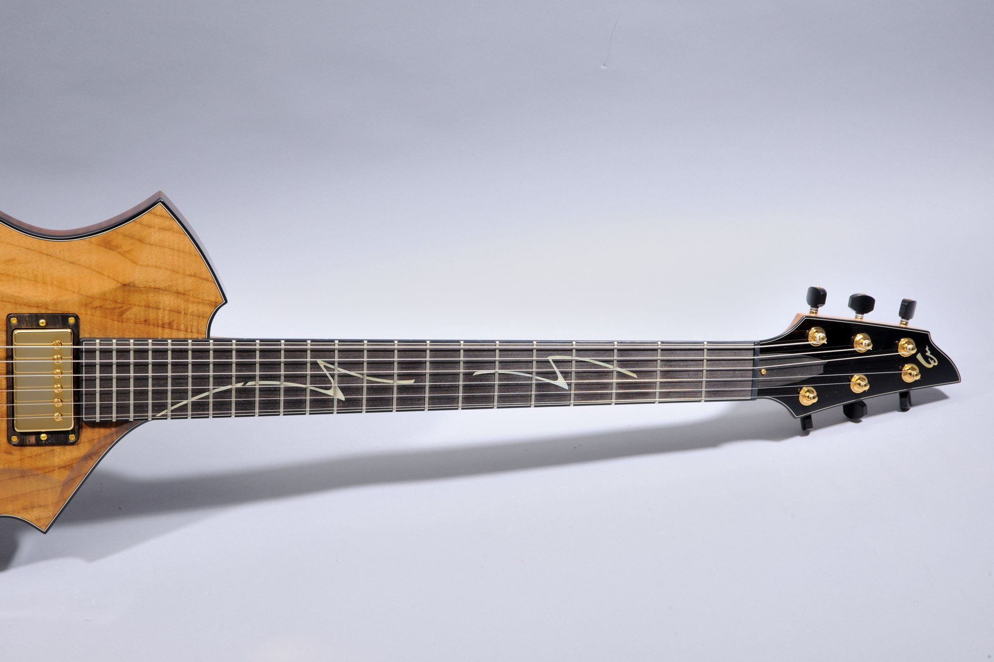 Ebony Fretboard with Black Binding and Lightning Bolt Inlays.