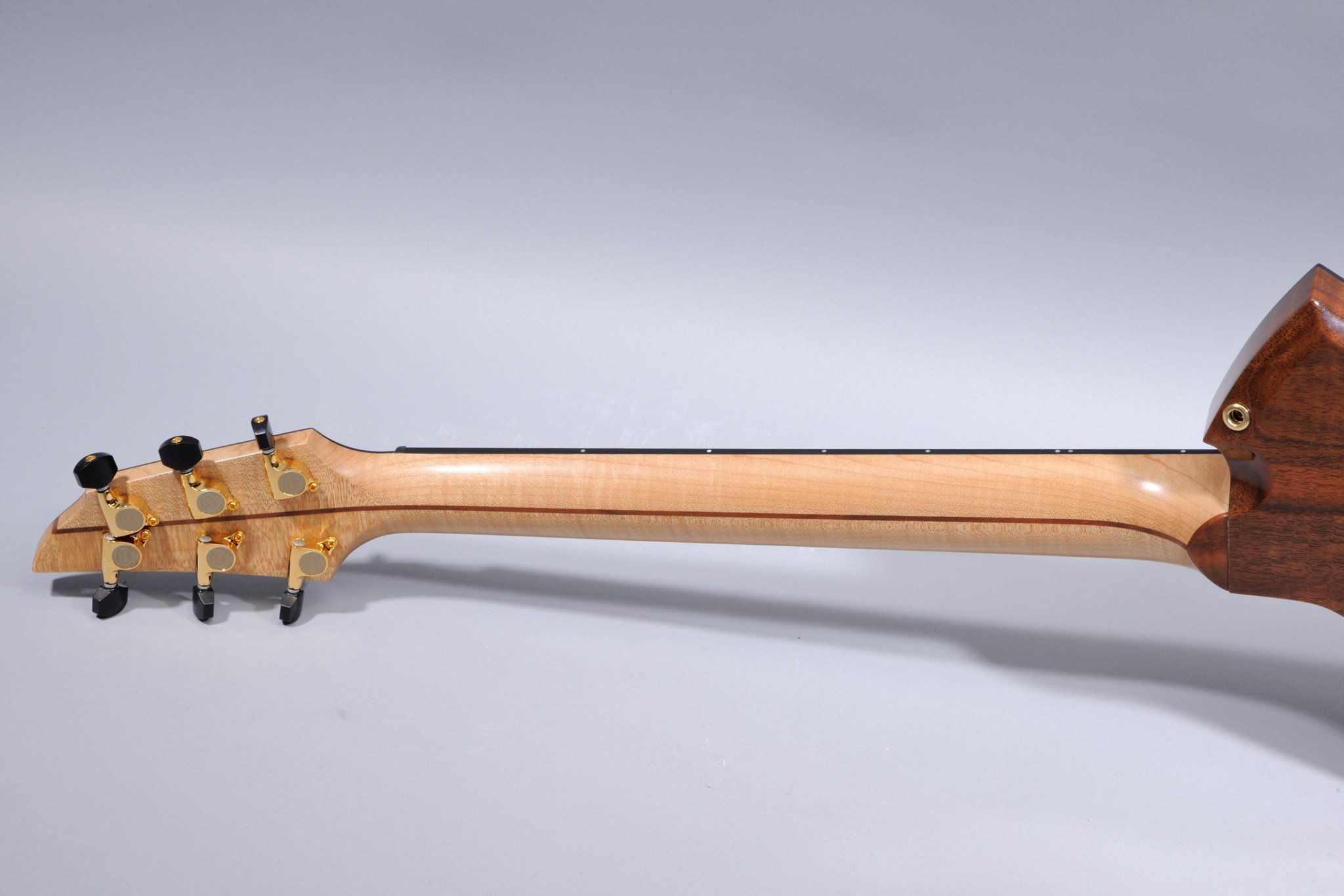 3 Piece Neck with 2 Maple Pieces and 1 Rosewood Central Stripe.