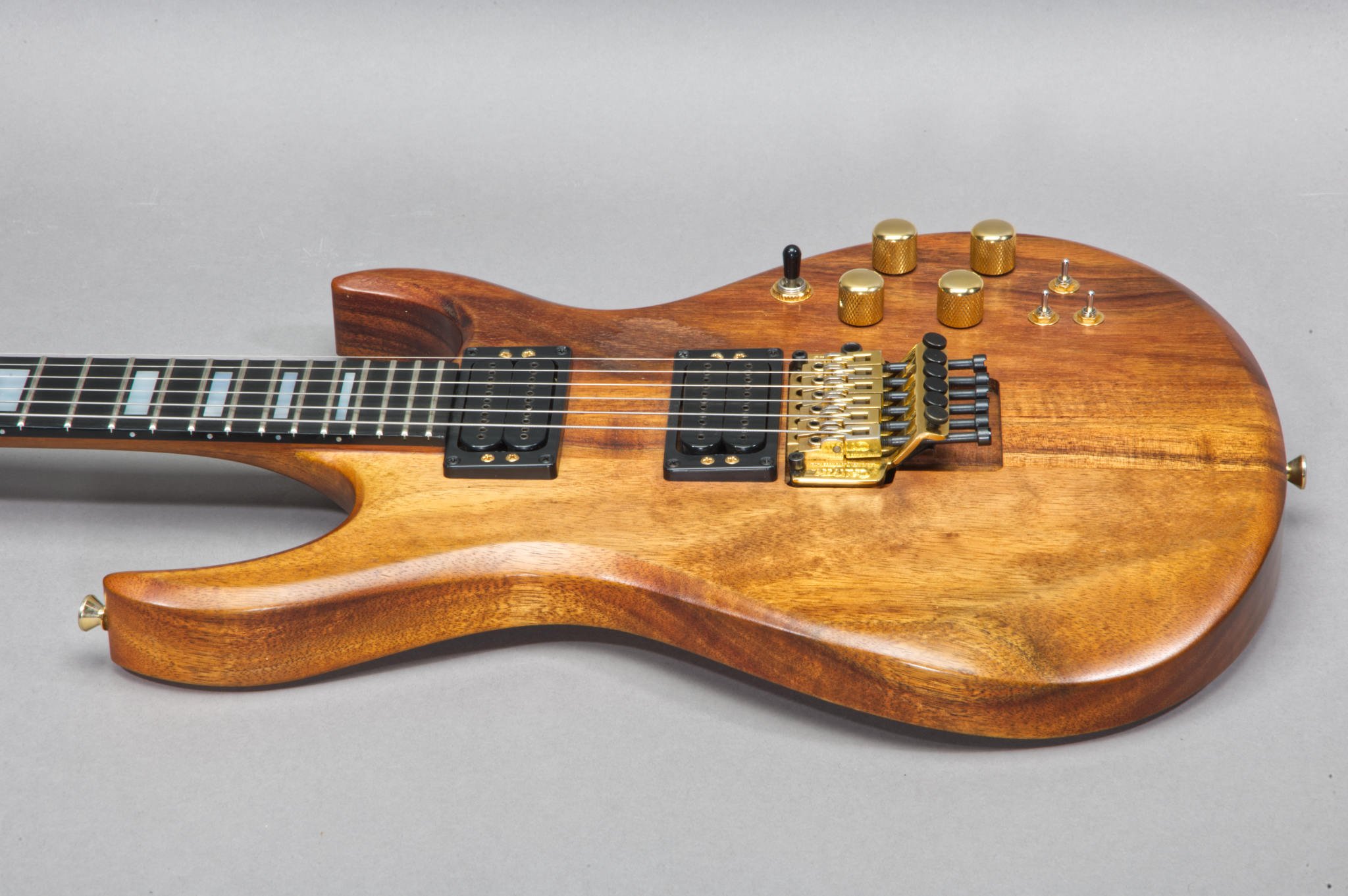 Neck Through Construction with upper and lower wing all solid Koa