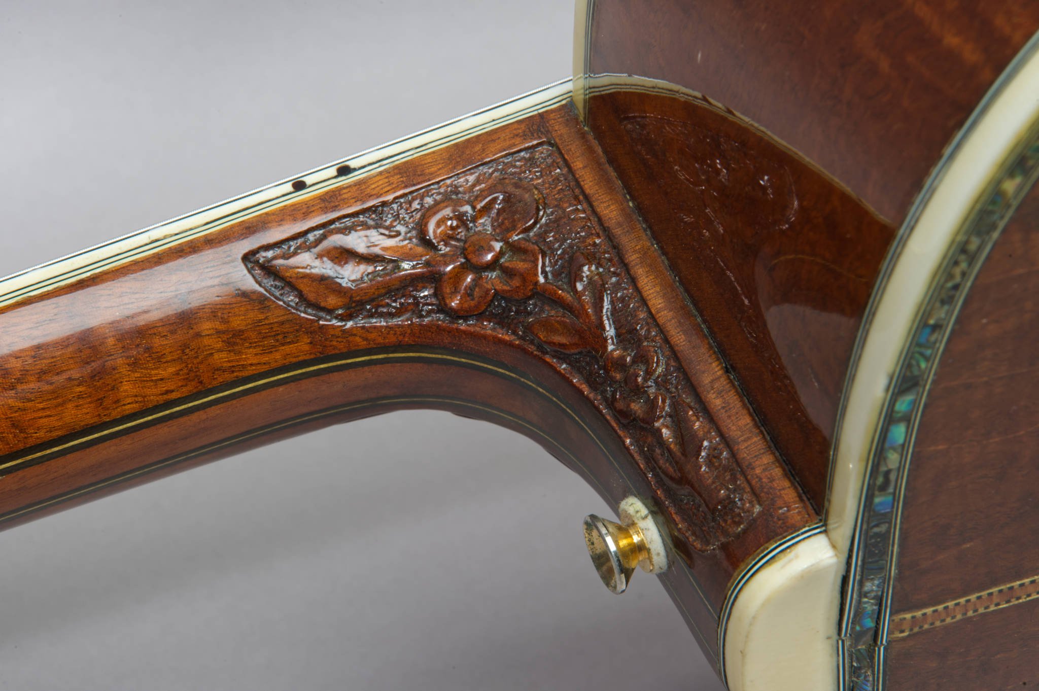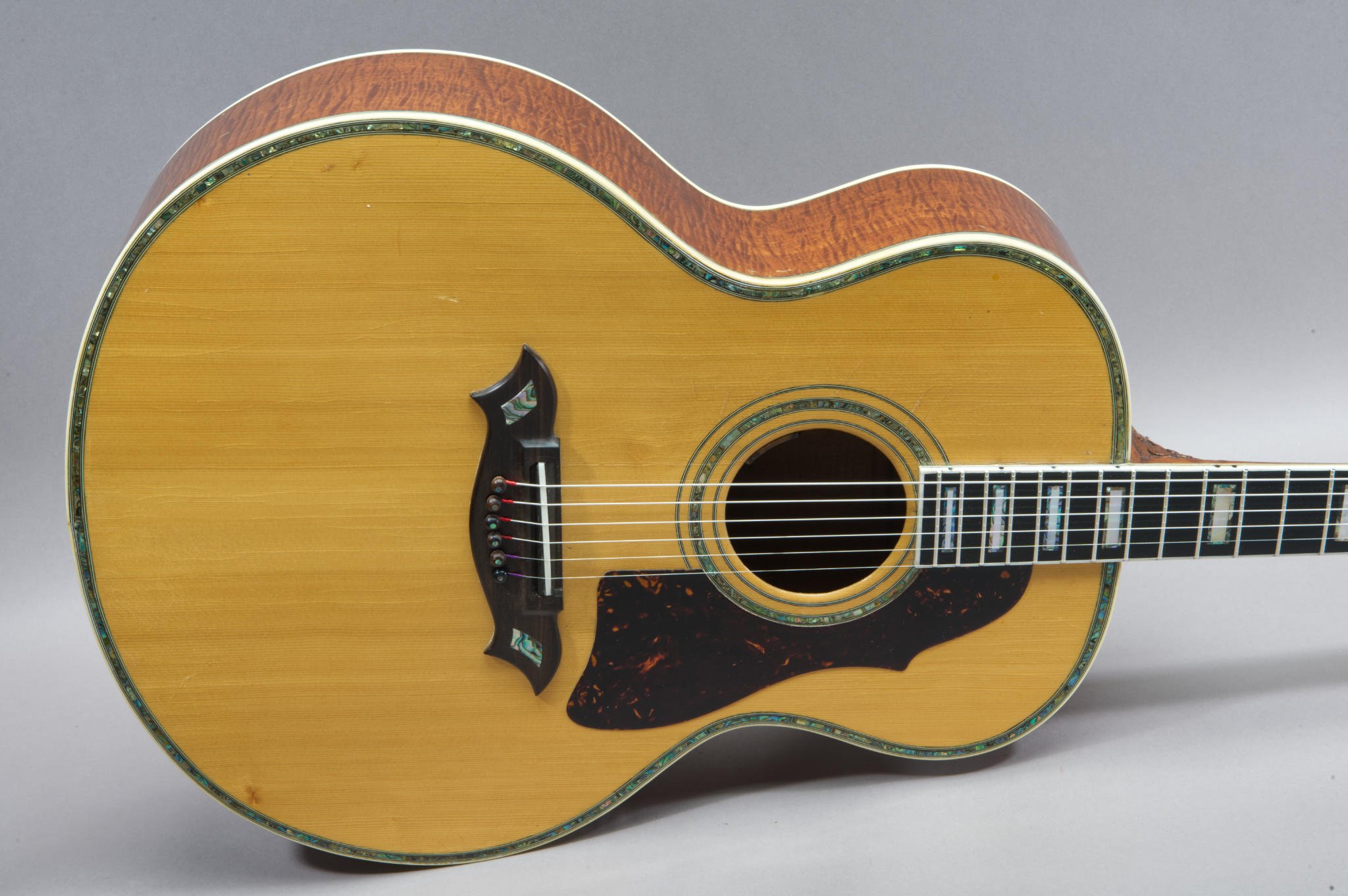 Ebony Fretboard with Pearl and Abalone Inlays.