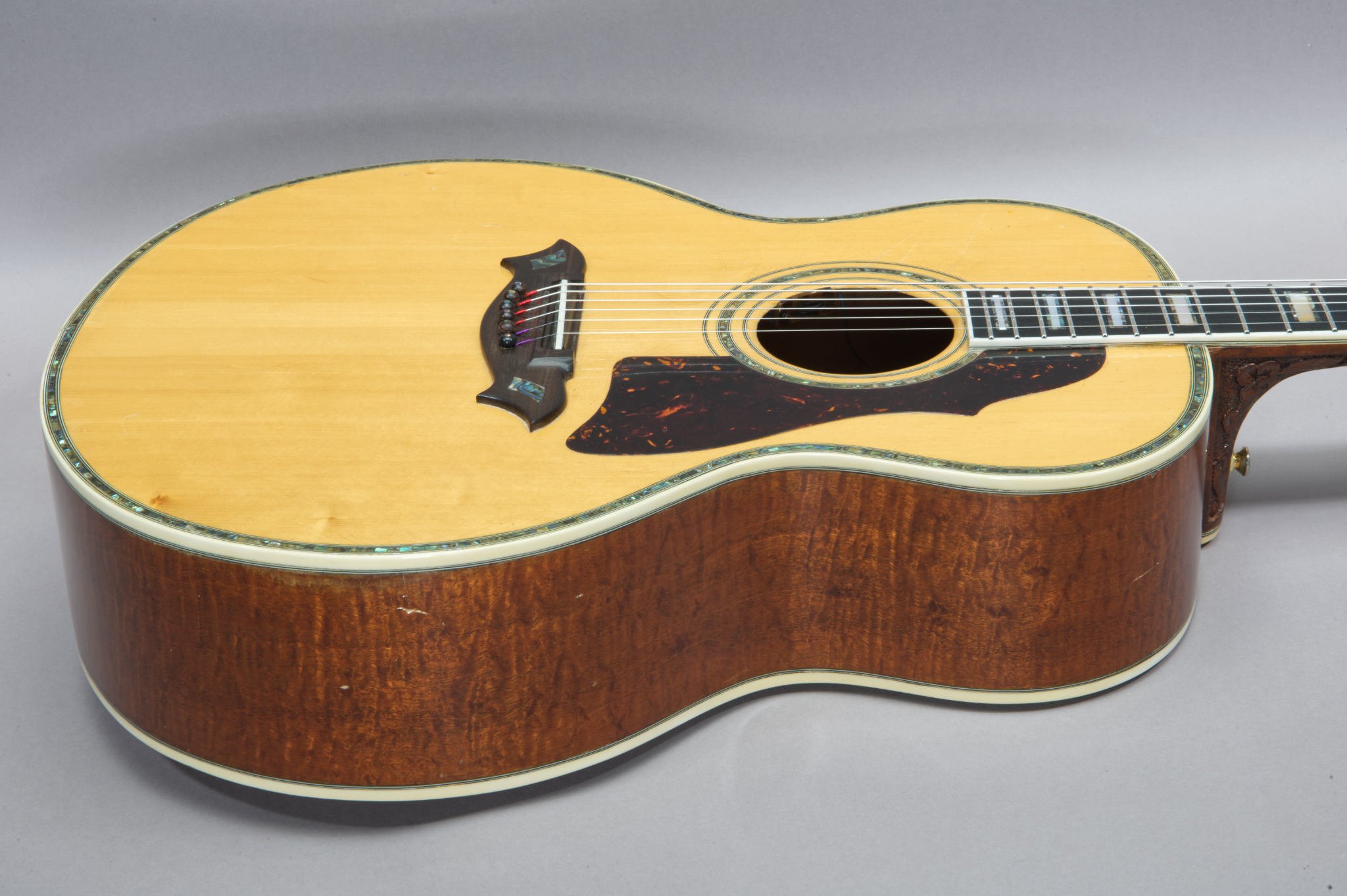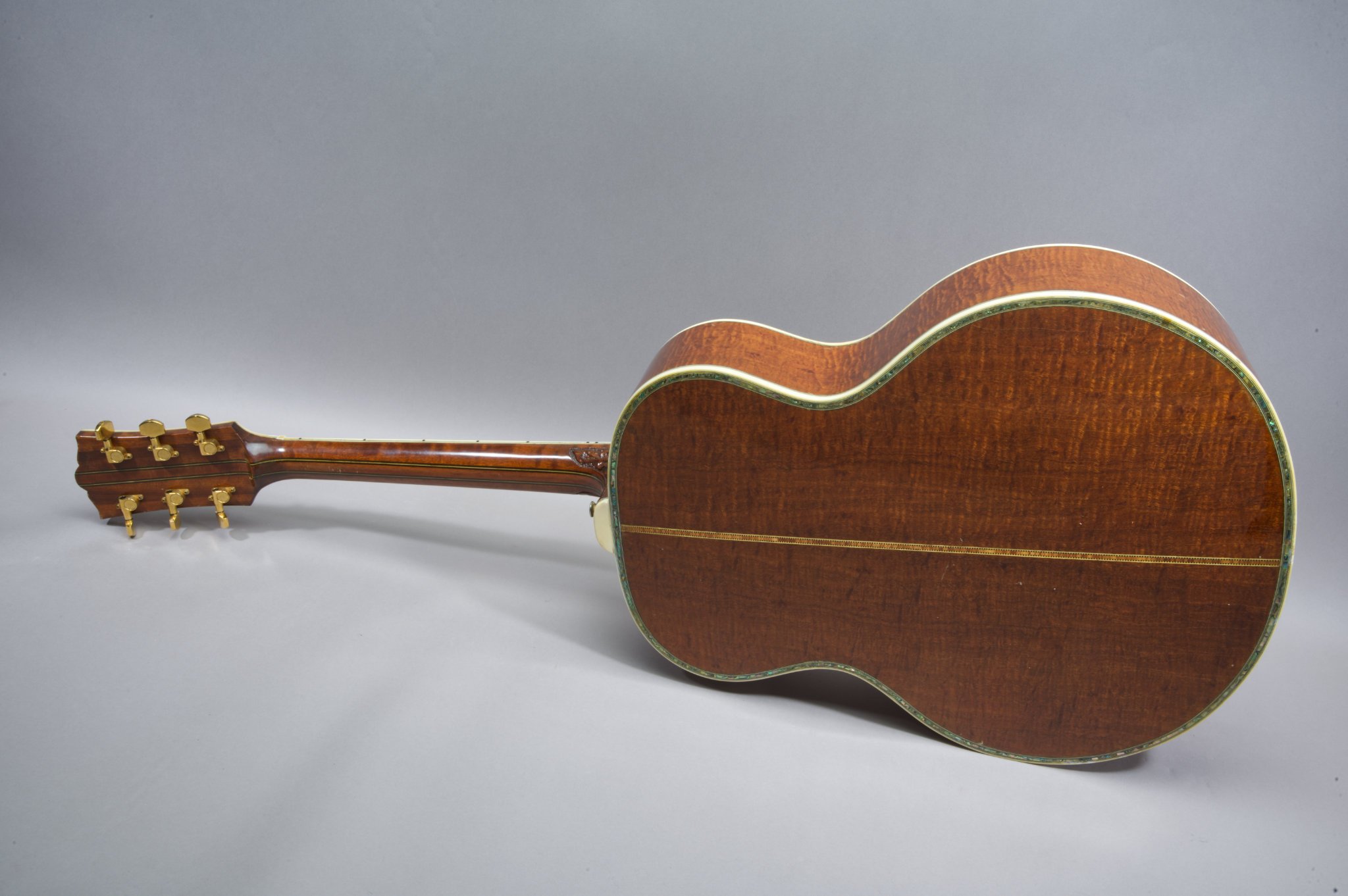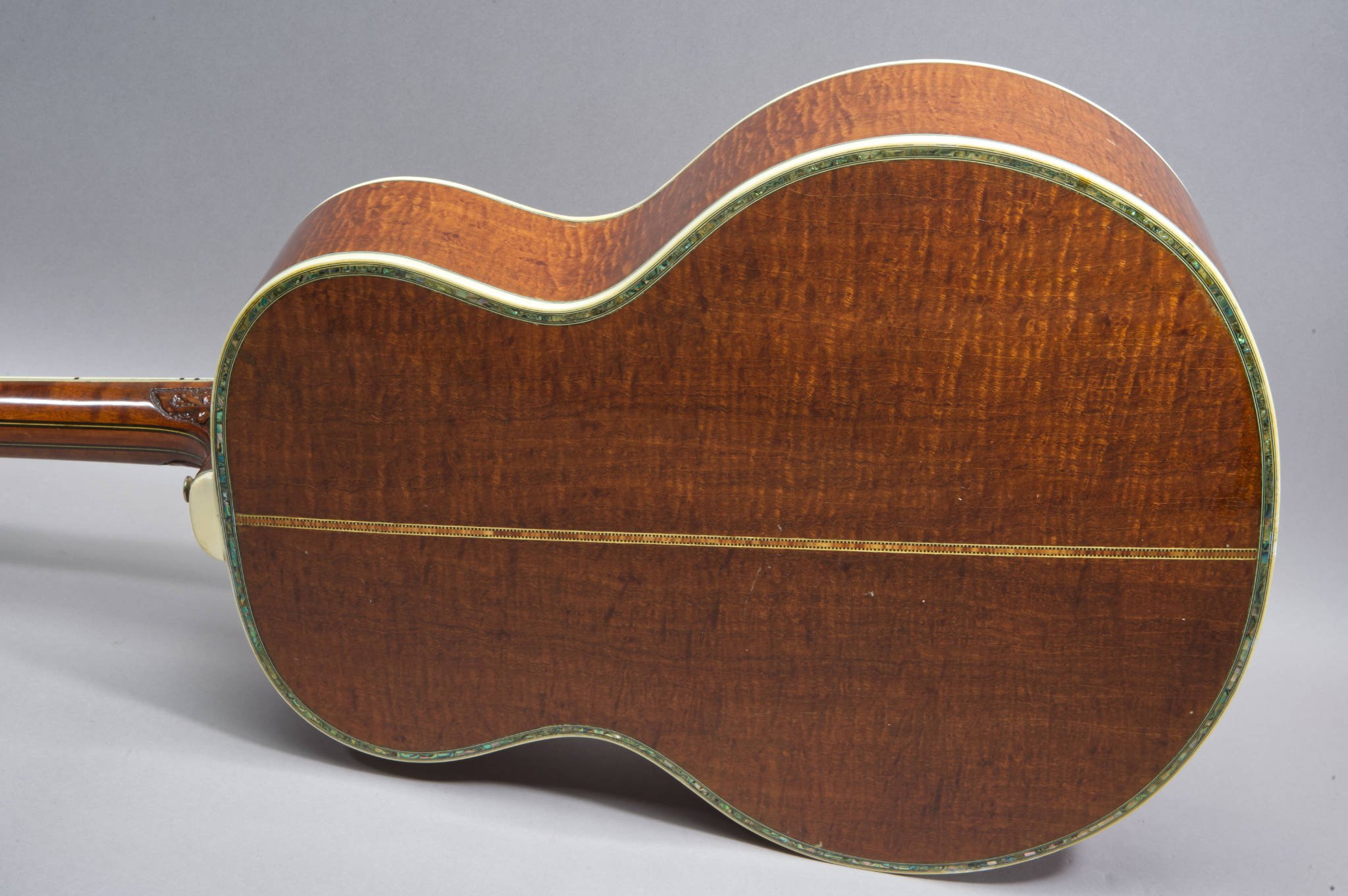 1 Piece Tabasco Mahogany Sides & 2 Piece Back with binding and Abalone Inlays.