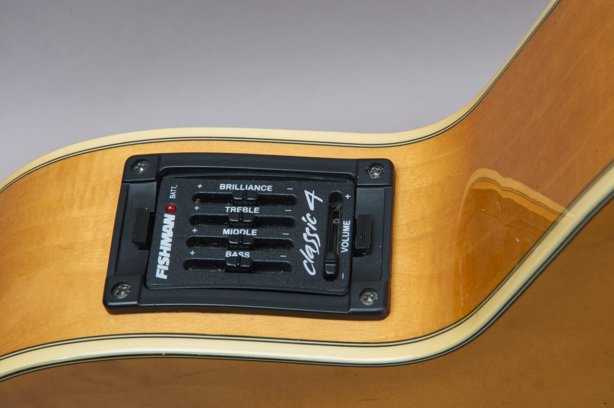 Fishman Classic 4 piezo pickup with Fishman Preamp.