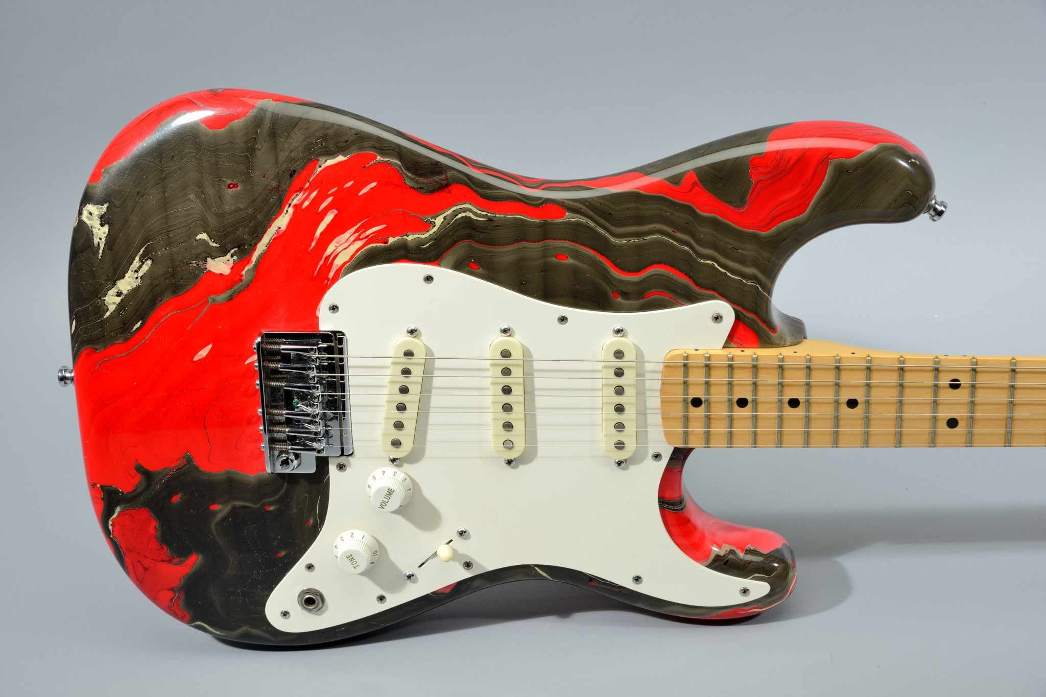 Fender 1984. Stratocaster Marble in Red Black & White Bowling Ball Swirl Finish.