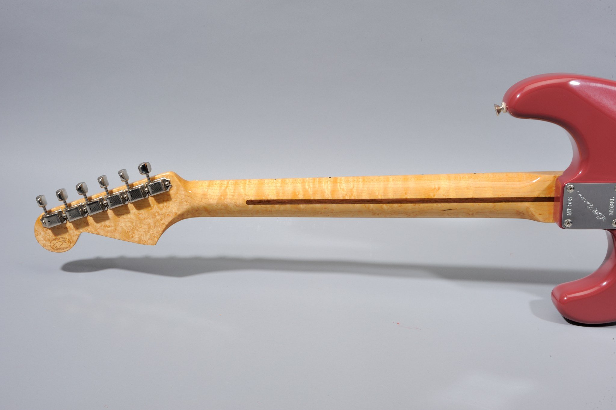 In 1992-1993 Fender made 100 of these Limited Edition Strats. As it turned out, only 41 of the original 100 Carson Strats destined for Music Trader were ever actually shipped to MT, forty right-handed models, serial numbers MT 000 through MT 039 and a single left-handed model, serial number MT 100. This is due to the fact that the bank providing the financing for the project was taken over by federal regulators in early 1992 resulting in the bank cancelling its financing for the project. Music Trader tried to continue with their own funds but this was not acceptable to Fender and Fender subsequently stopped the project in July 1992, halting and denying any further involvement in the Carson Strat by Music Trader. The initials MT on the back plates stand for Music Trader. Guitars from numbers 40 through 99 do not contain all documents, especially the one from Music Trader that is signed by Donald Schwartz stating the origin of the guitar and the history of the color of the guitar.