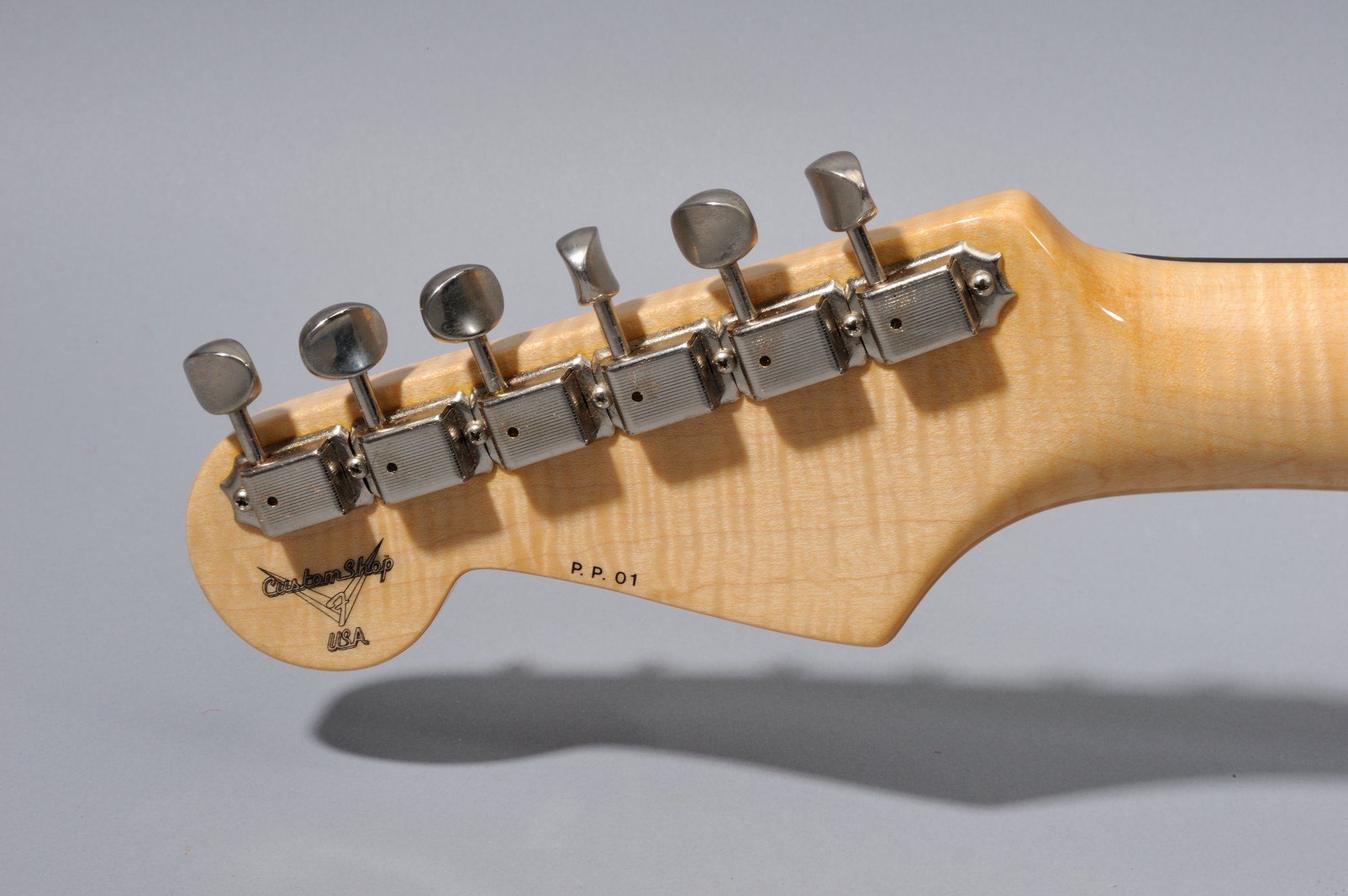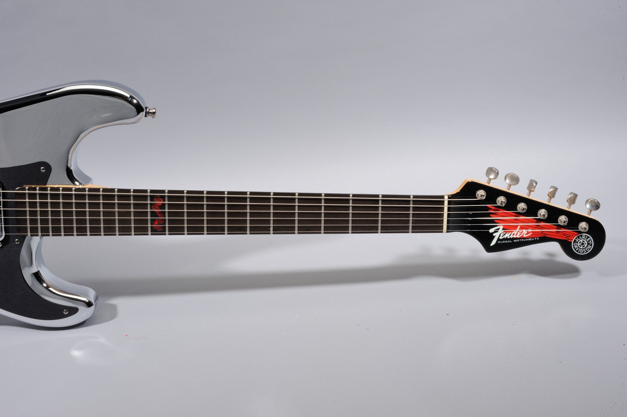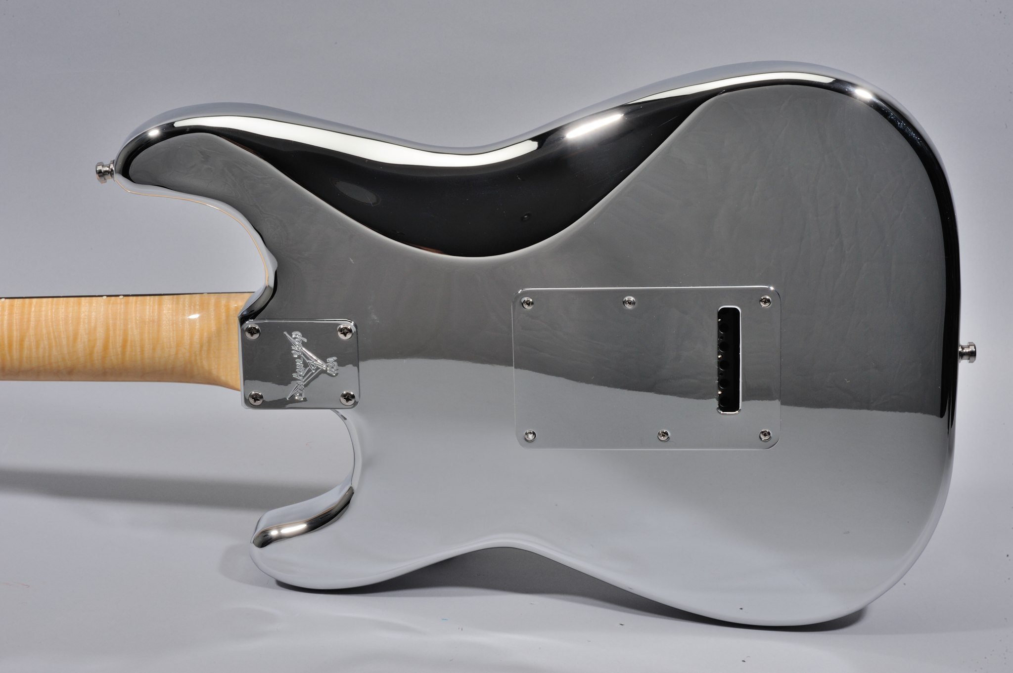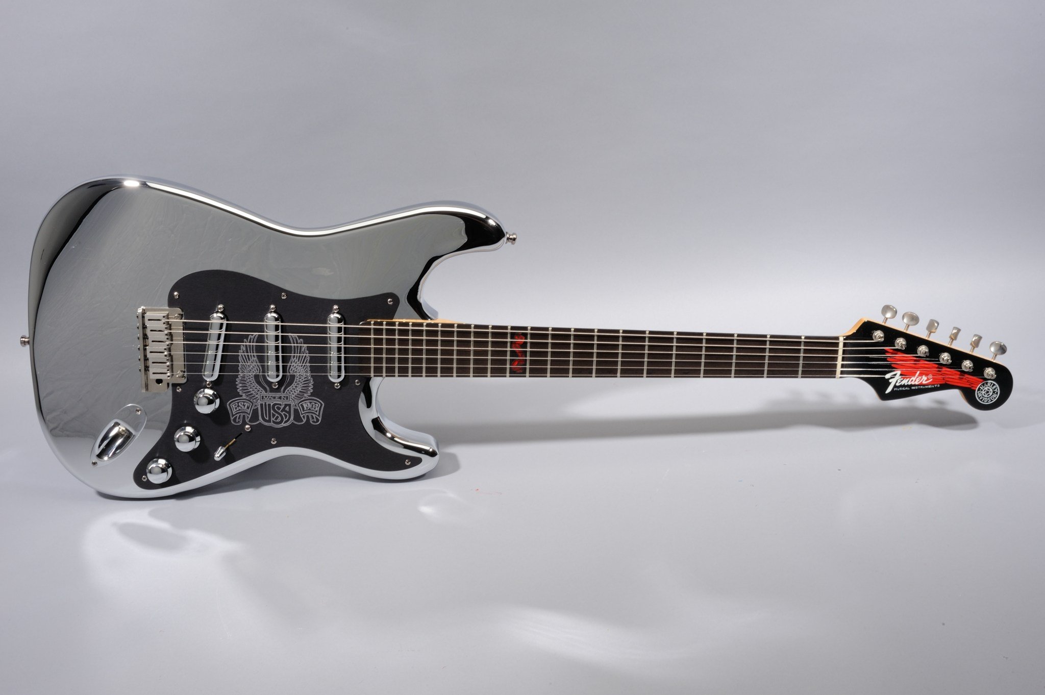 As for the other two HD Strats Chrome Prototypes, the Peghead Art is hand-painted by Pamelina Hovnatanian herself, and not silk-screened as on the production model.