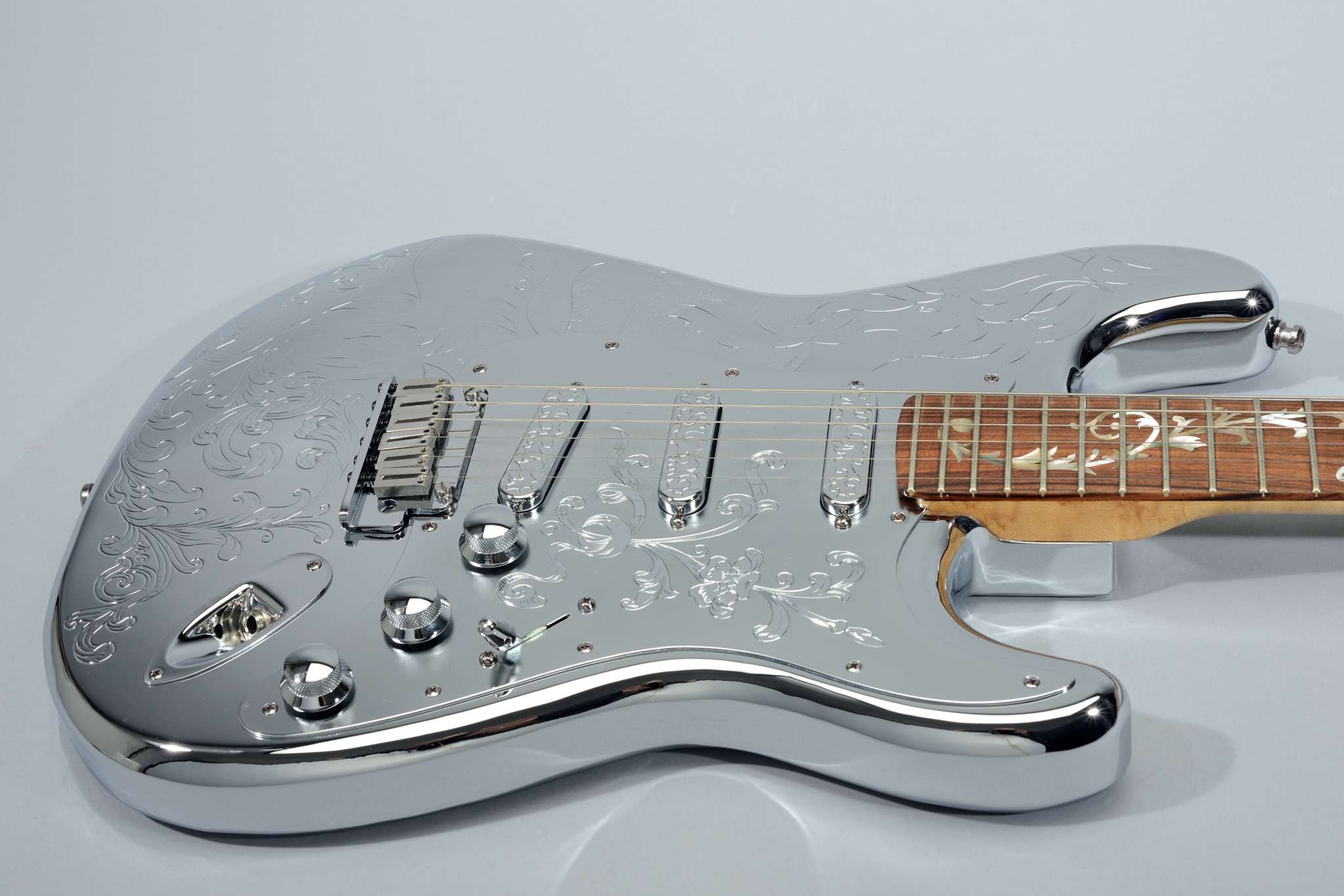 This model is called, " The NAMM Metal Engraved Art Nouveau Stratocaster", of which there were only 4 produced.