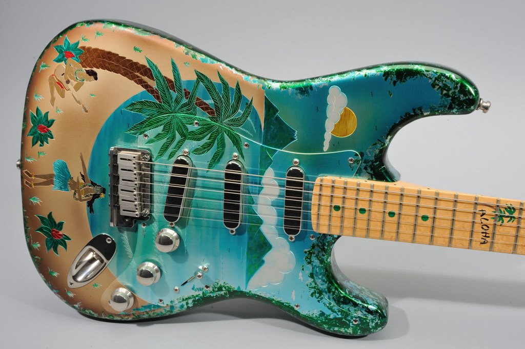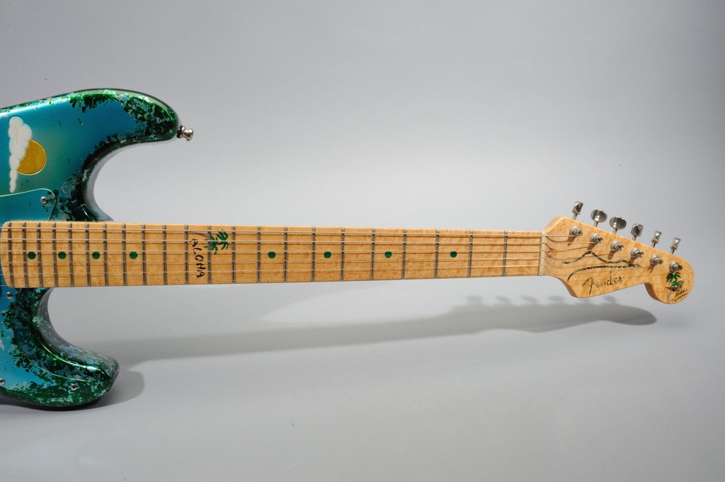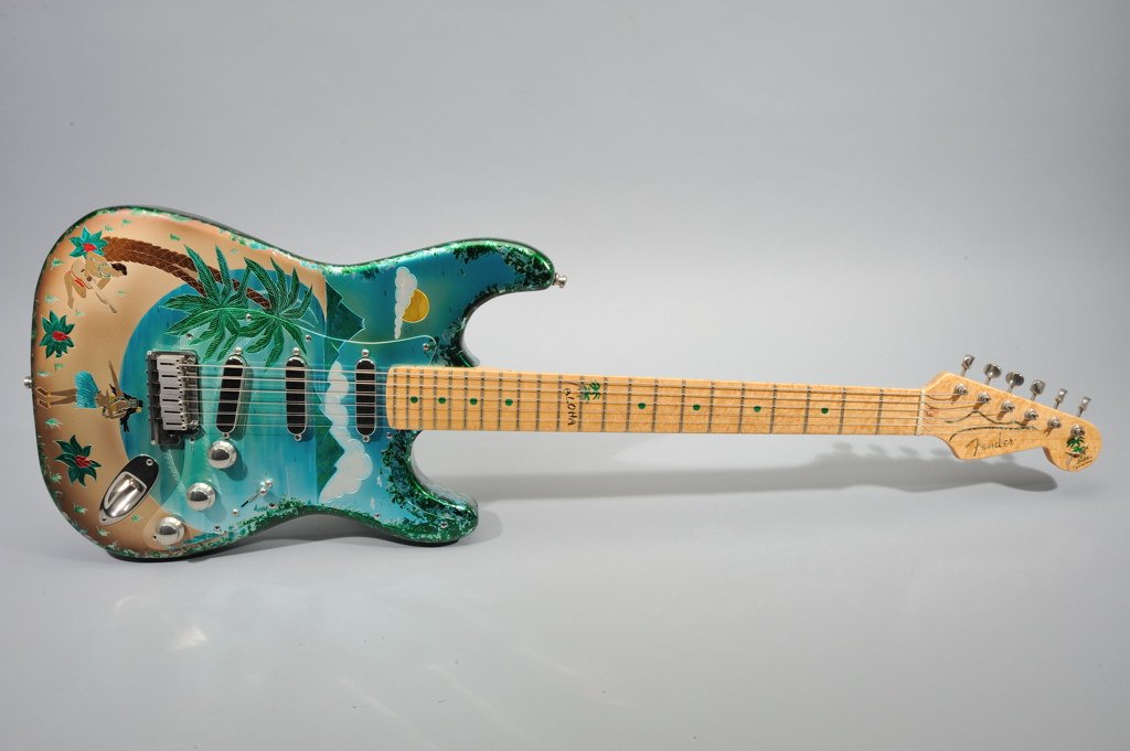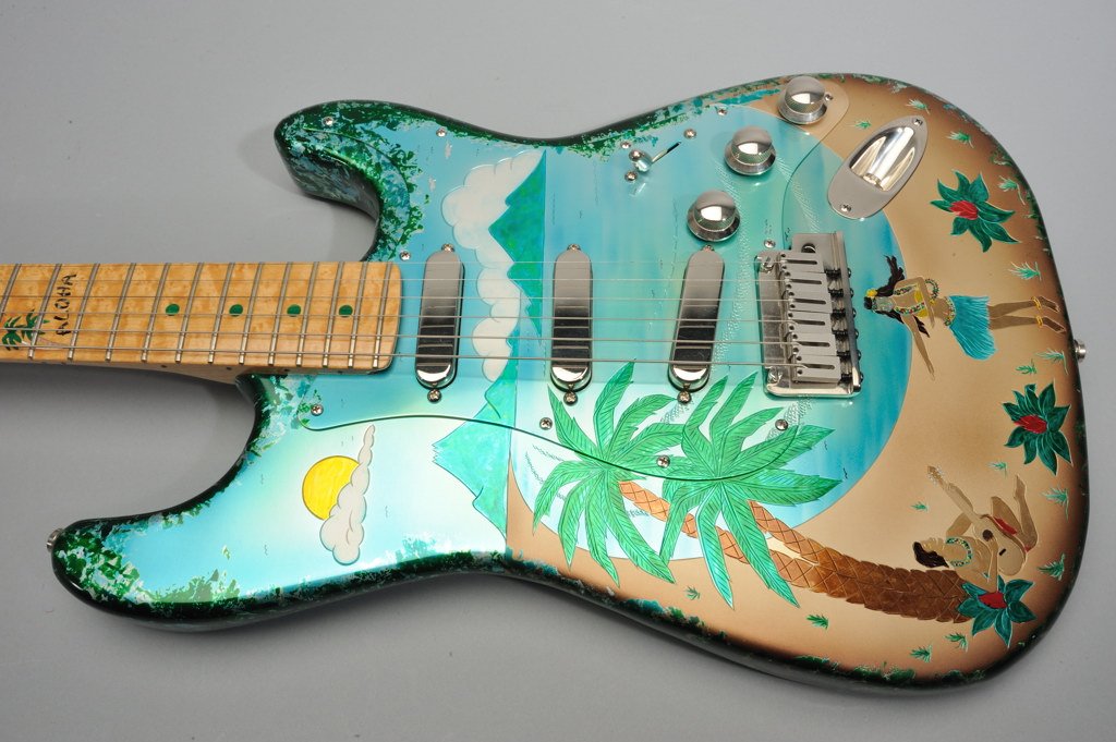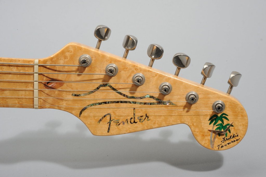 The Aloha Stratocaster guitar was built in memory of Hawaiian musician and inventor Freddie Tavares, who died in 1990. Tavares was one of the designers of the Fender Stratocaster, amongst other Fender products (such as the Bassman amp). Tavares also played the signature steel guitar swoop in the beginning of the Looney Tunes theme song.