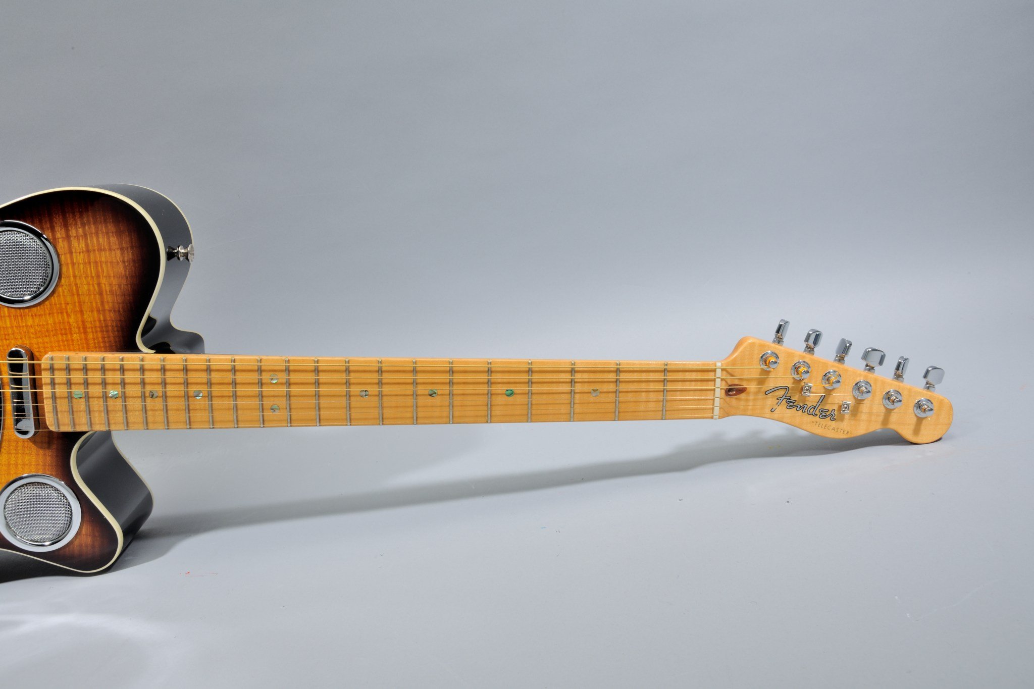 1 Piece Flame Maple Neck and Fretboard with Abalone Dots.