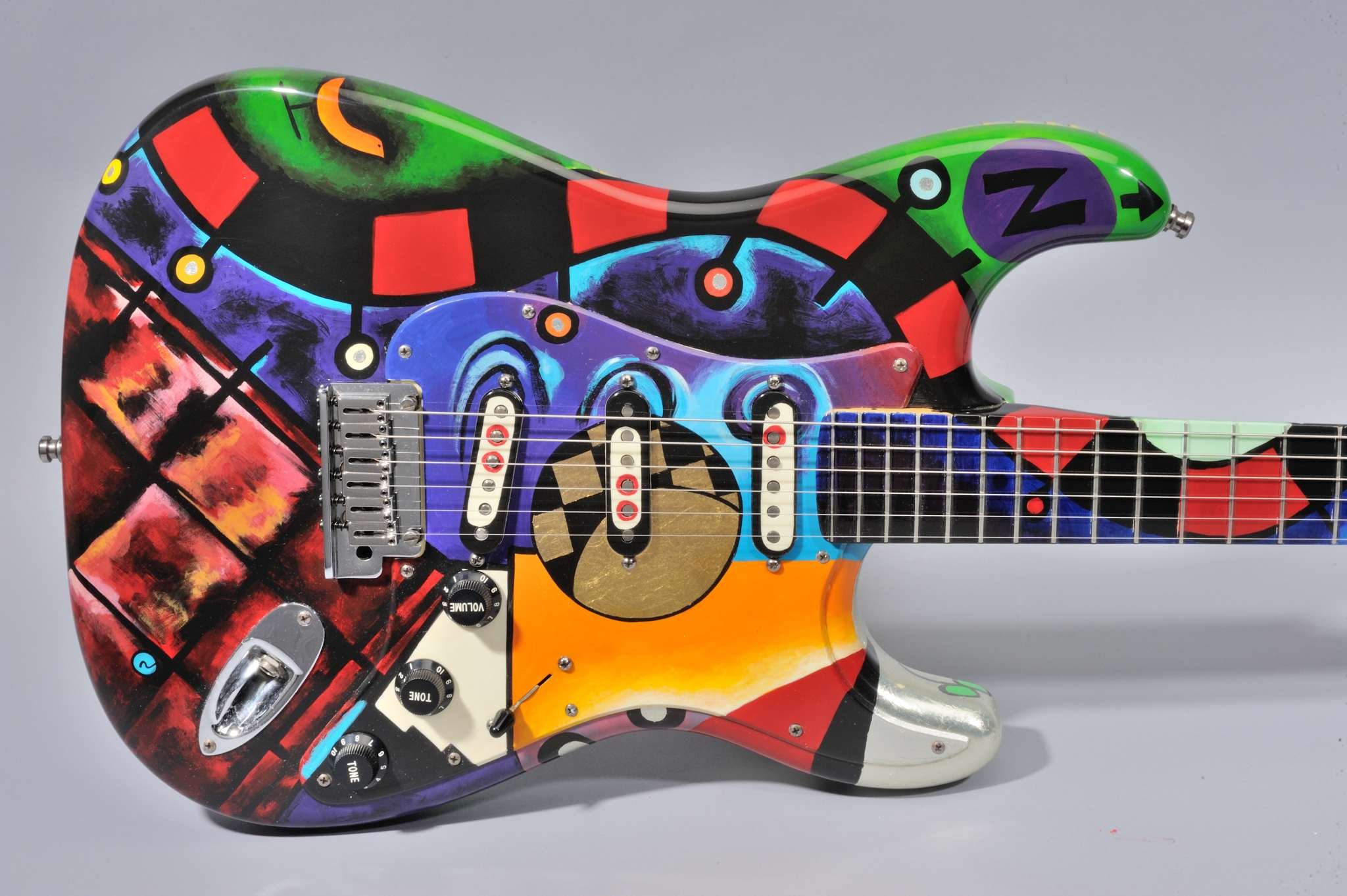 Fender 2003. Stratocaster “You Are Here” From GuitarMania Series, Artwork by Lisa Meek, Painted by Pamelina Hovnatanian ©2003.
