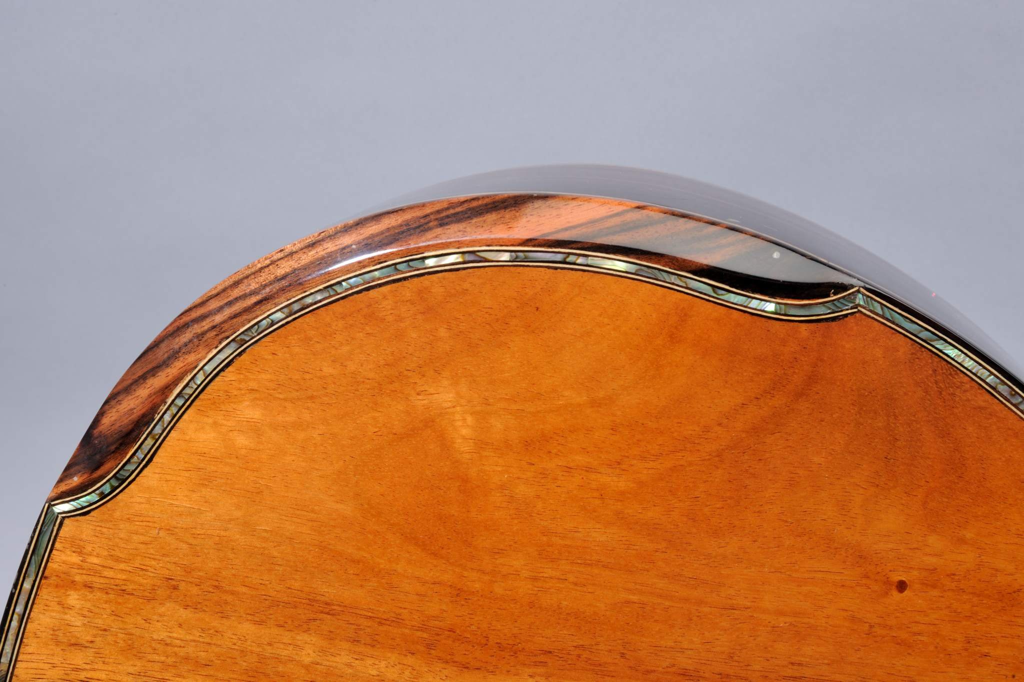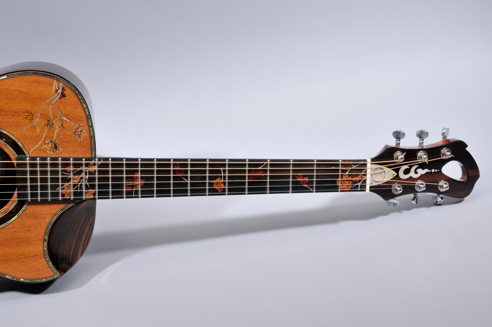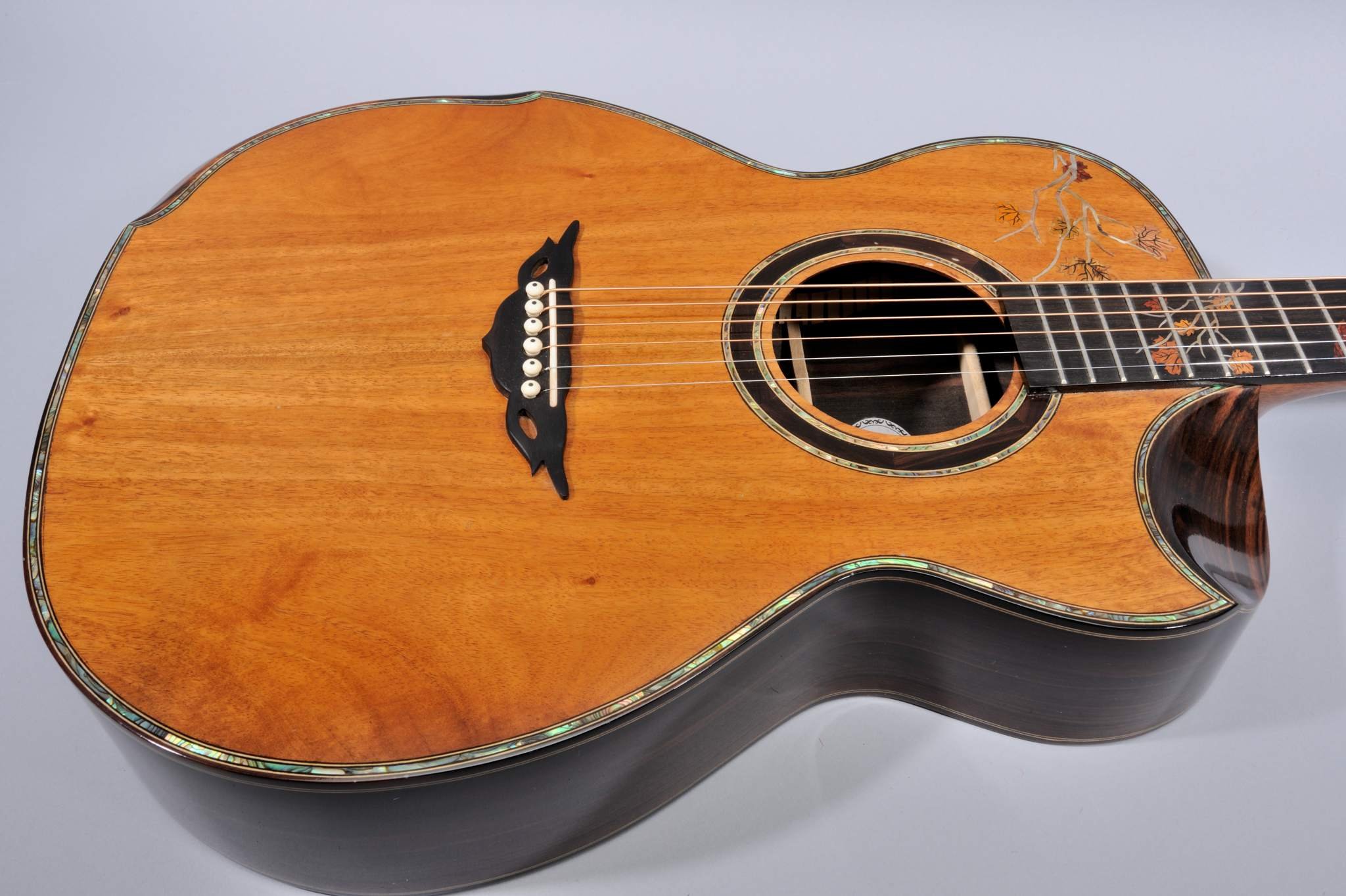 2 Piece Koa Top with Abalone Binding and Leaves Inlays.