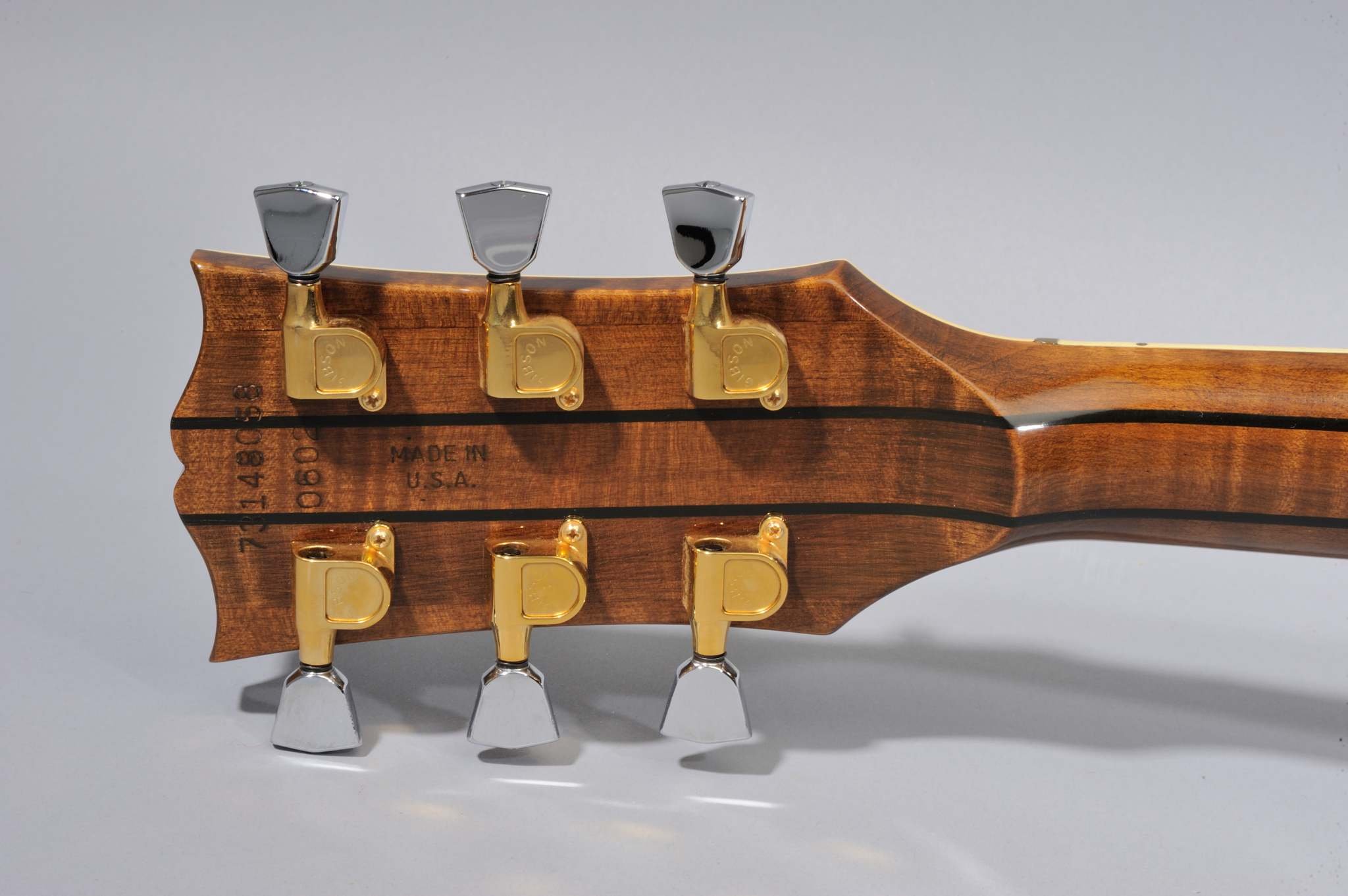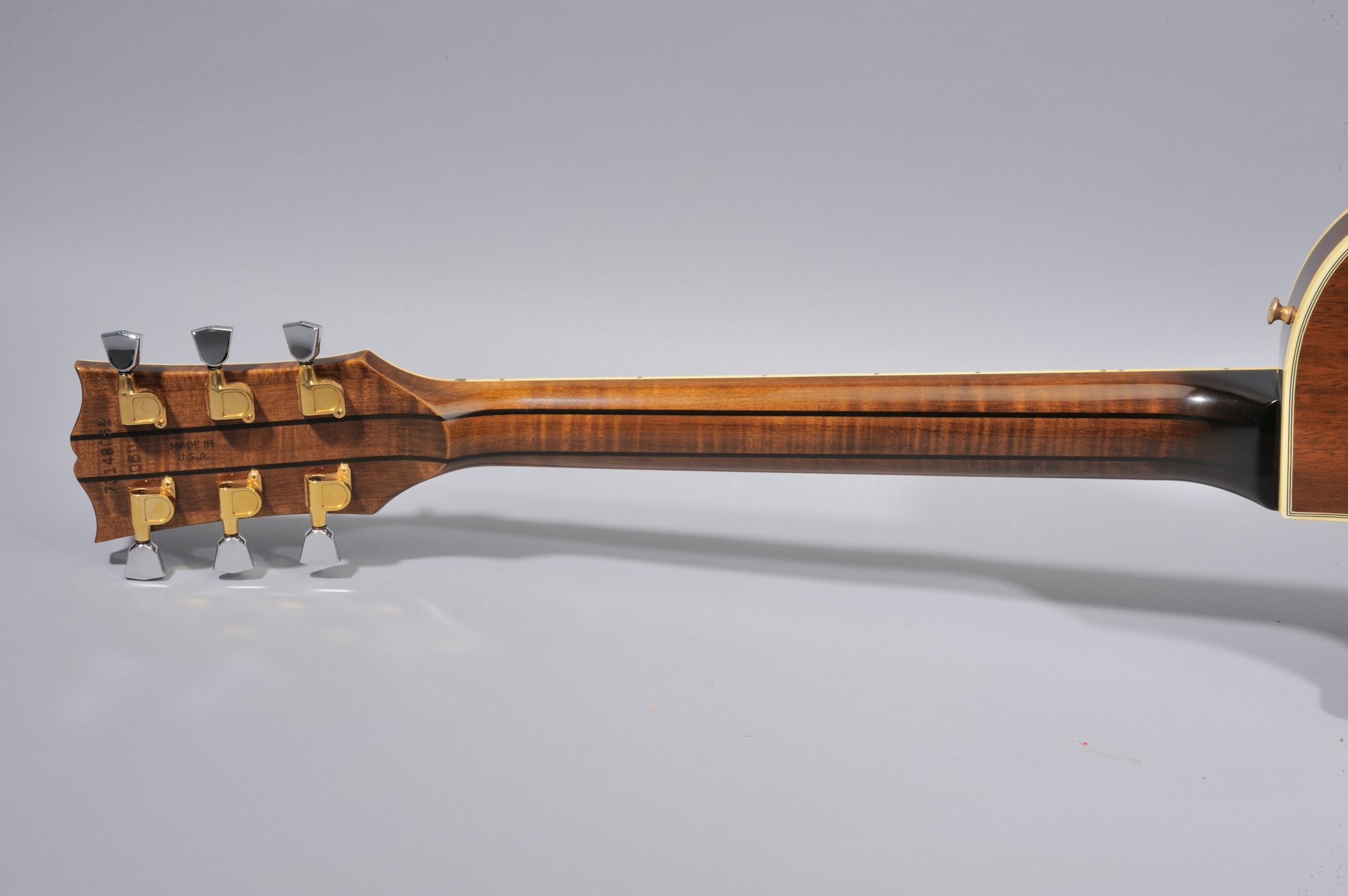 All 25/50s were made in Gibson's Kalamazoo plant. The regular 8 digit serial number in "YDDDYSSS" format was used on the 25/50 (where "YY" is the year, "DDD" is the day of the year, and "SSS" is the production sequence number, with numbers below 500 used at Kalamazoo). In addition, the 25/50 has a four digit edition number, which presumably gave it that "limited edition" marketing image. The "Made in USA" stamp is also on the back of the headstock.