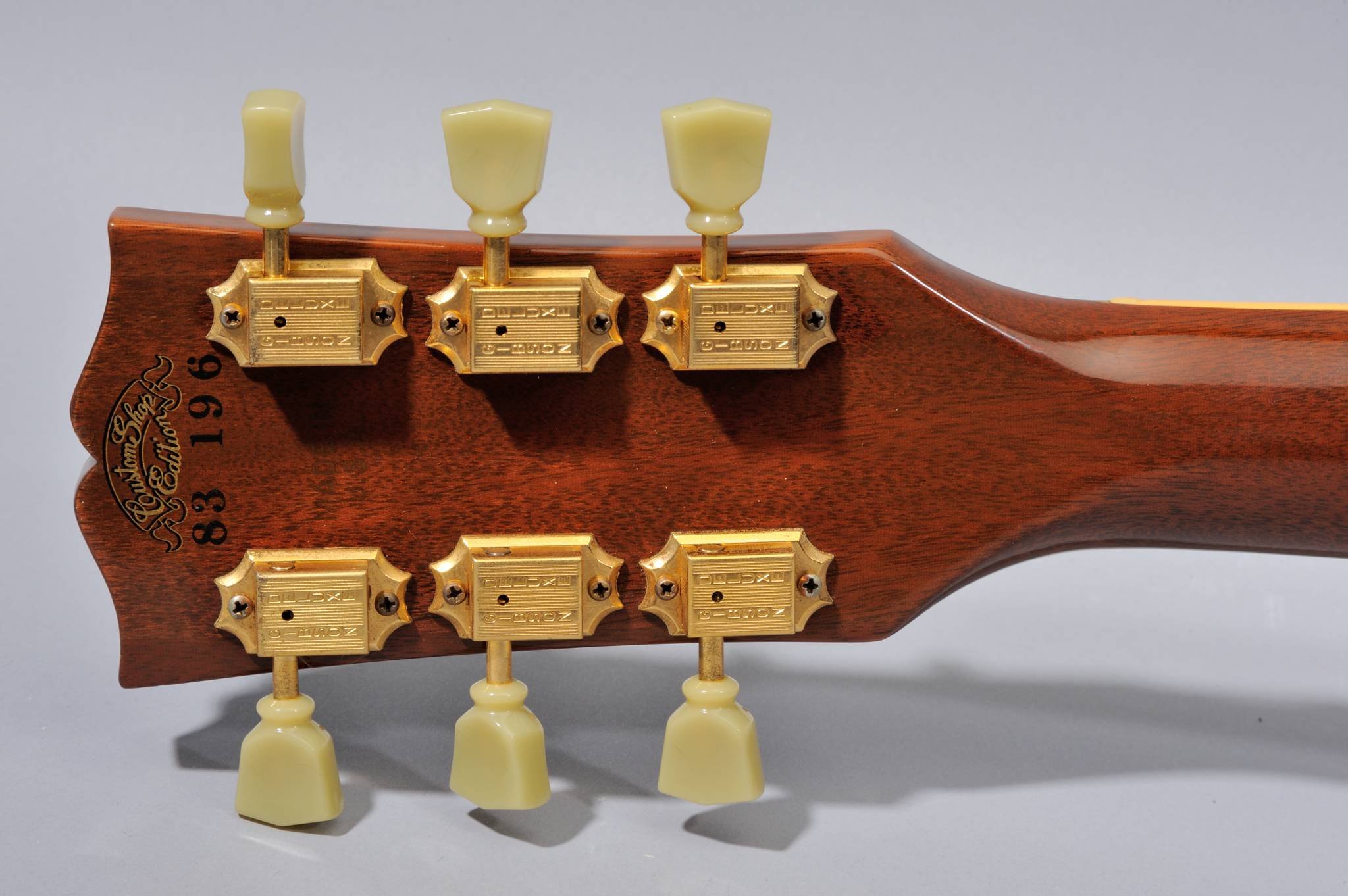 The Spotlight Special is instantly recognizable by the contrasting strip of walnut down the center of the body, with curly maple or quilted maple on both sides of the strip. It has a gold Custom Shop logo on the rear of the headstock, with an inked serial number of 83-XXX, with "XXX" ranging from 001 to 211.