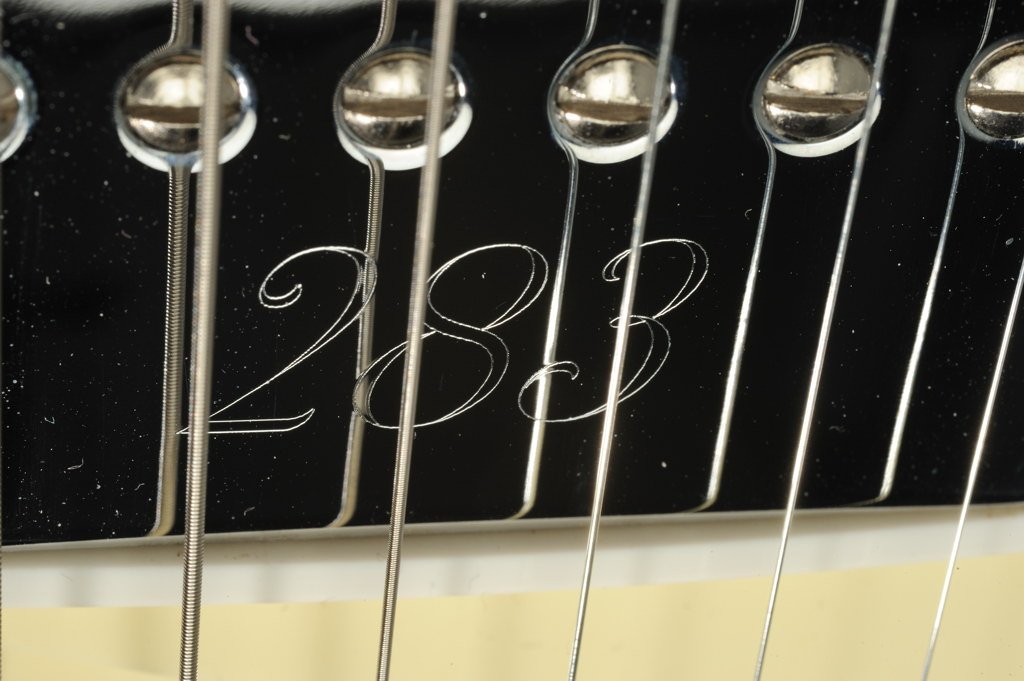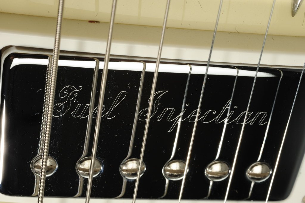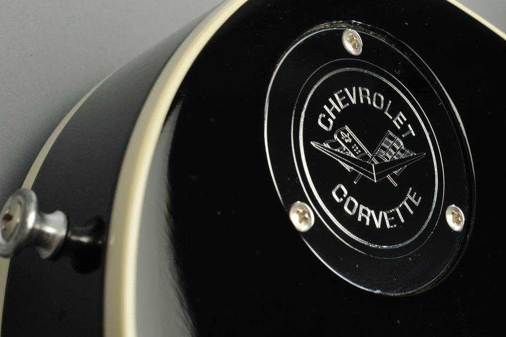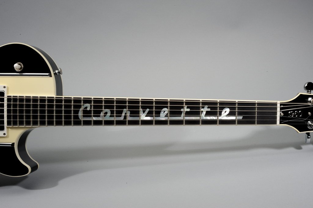 The Corvette was produced in 1995 to commemorate the 42nd anniversary of General Motor's Chevrolet Corvette and Gibson's Les Paul's 43rd anniversary. The ebony fretboard inlayed with pearl Corvette script from 1960. The headstock is inlayed with the Chevrolet Corvette crossed flags. The back cover plates and truss rod cover are engraved chrome plated brass and the pickup covers are engraved with ''283'' and ''fuel injection'' in the original script. The maple top is hand carved to simulate the famous side scoop of the 1960 Corvette.
