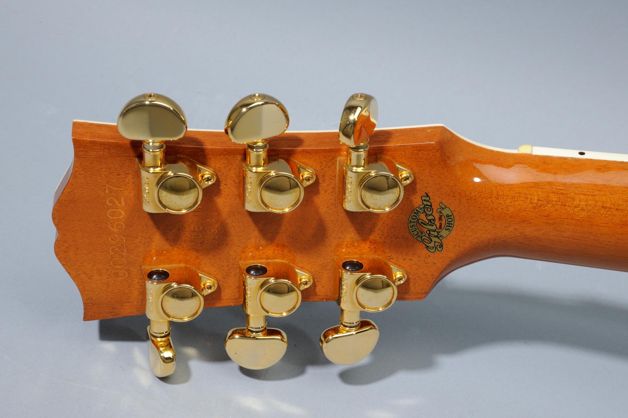 Headstock Overlaid in Black and Inlaid in Abalone with the Gibson Logo and a Rose Vine Ornamentation.