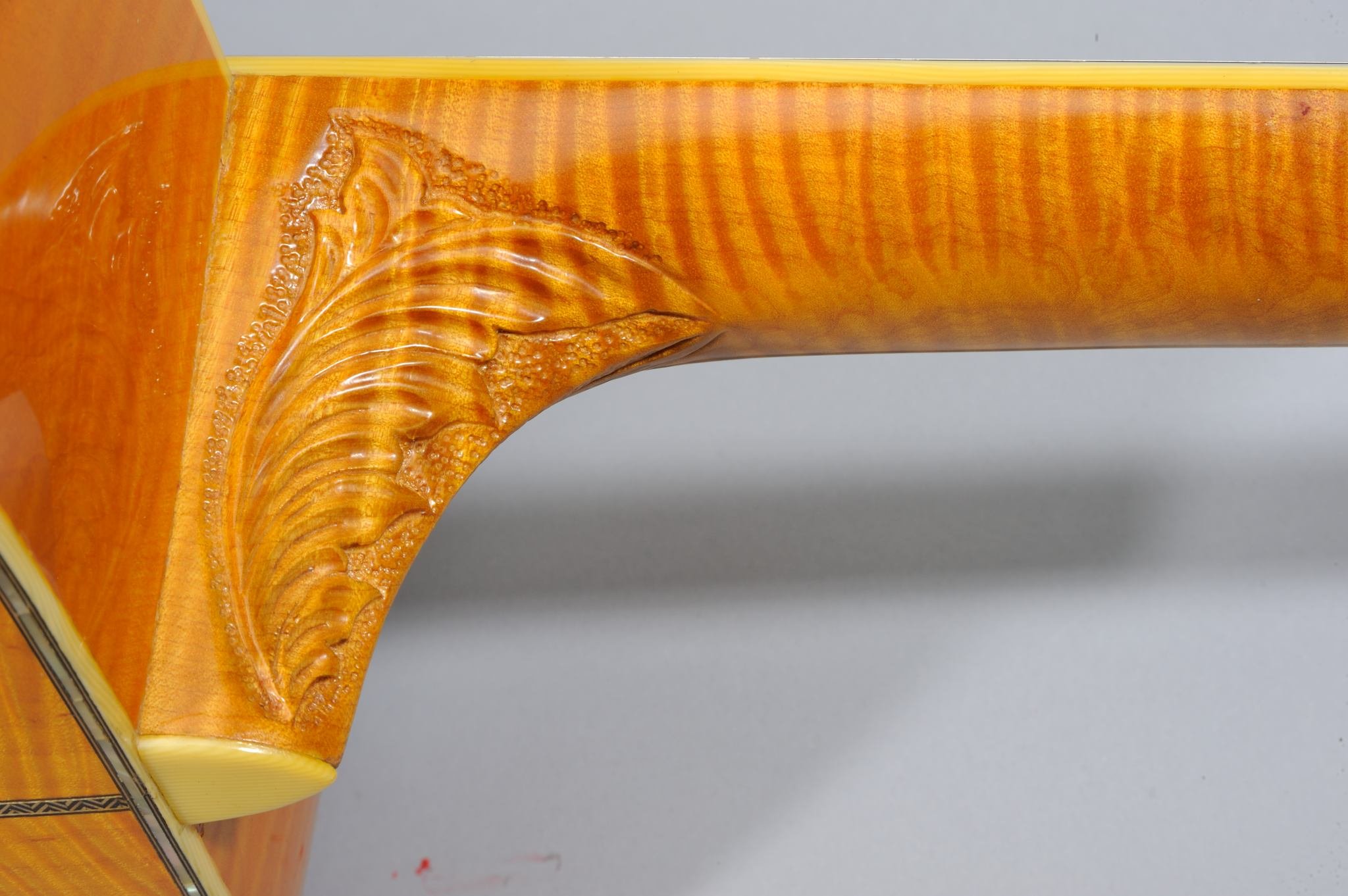 I looked for materials that would give me the voice I seek, but more than materials alone, I have built very much like Martin and Gibson did in the early 1930's; light, strong heavily scalloped bracing, low body mass, and thin, flexible finishes. My guitars are “modern” where modern adds to the function without impacting tone, but the feel and sound is every bit “vintage”. Powerful over the entire range of the fingerboard, deep and rich texture to the voice, responsive to a fault are all descriptive of my guitar sound.