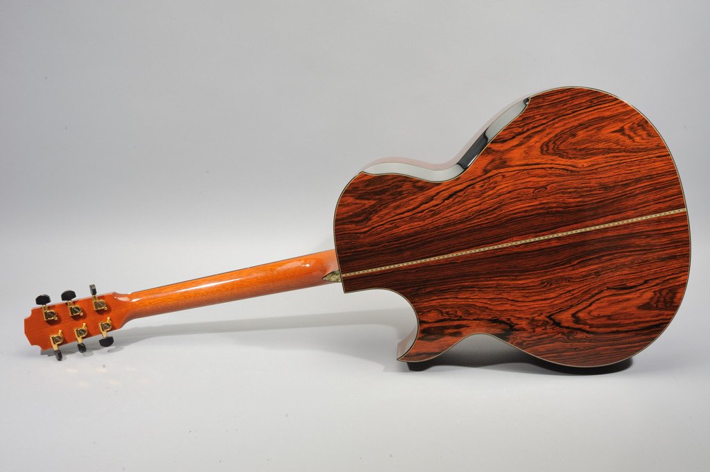 William Laskin decided he wanted to be a guitar maker at age 17 when he saw a Jean Larrivee instrument. He apprenticed with Jean for two years before setting out on his own. He has been building guitars since 1971. His goal for his guitars is “clarity, sweetness of tone, and a full, round musicality.” Laskin is also known for his intricate inlay work. Larry Robinson, author of The Art Of Inlay, calls Laskin “the most astonishing inlay artist in North America.”