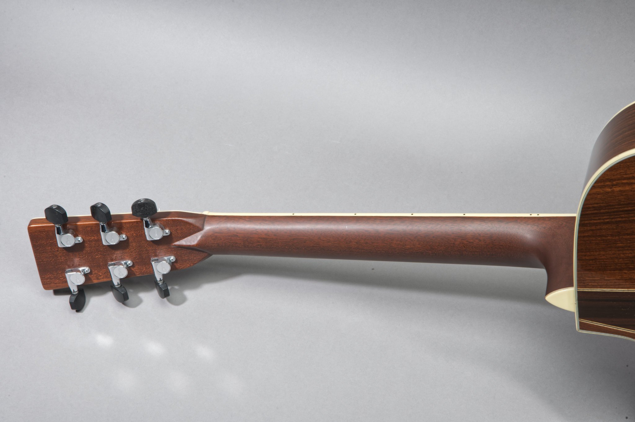This guitar showcases extraordinary purfling, even for a Signature Edition Martin. The top features seven-ply, differential width black/white purfling while the back is encircled by five-ply black/white fine line purfling. Black/white purfling accents the sides, end piece, heelcap, headstock and fingerboard. To show off the purfling to best advantage, the guitar is bound in grained ivoroid throughout: body, neck and headstock. A gloss finish on the body highlights the purfling; the neck sports a satin finish for playing comfort.