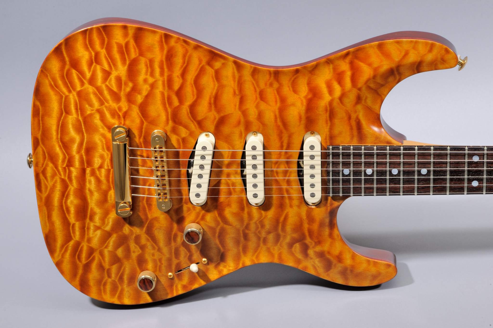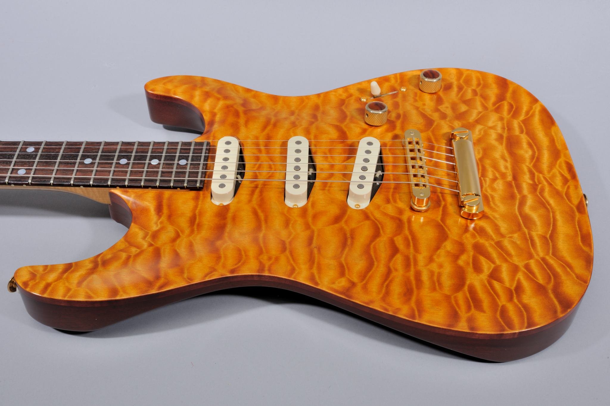 1 Piece Figured Maple Neck with Rosewood Fretboard.