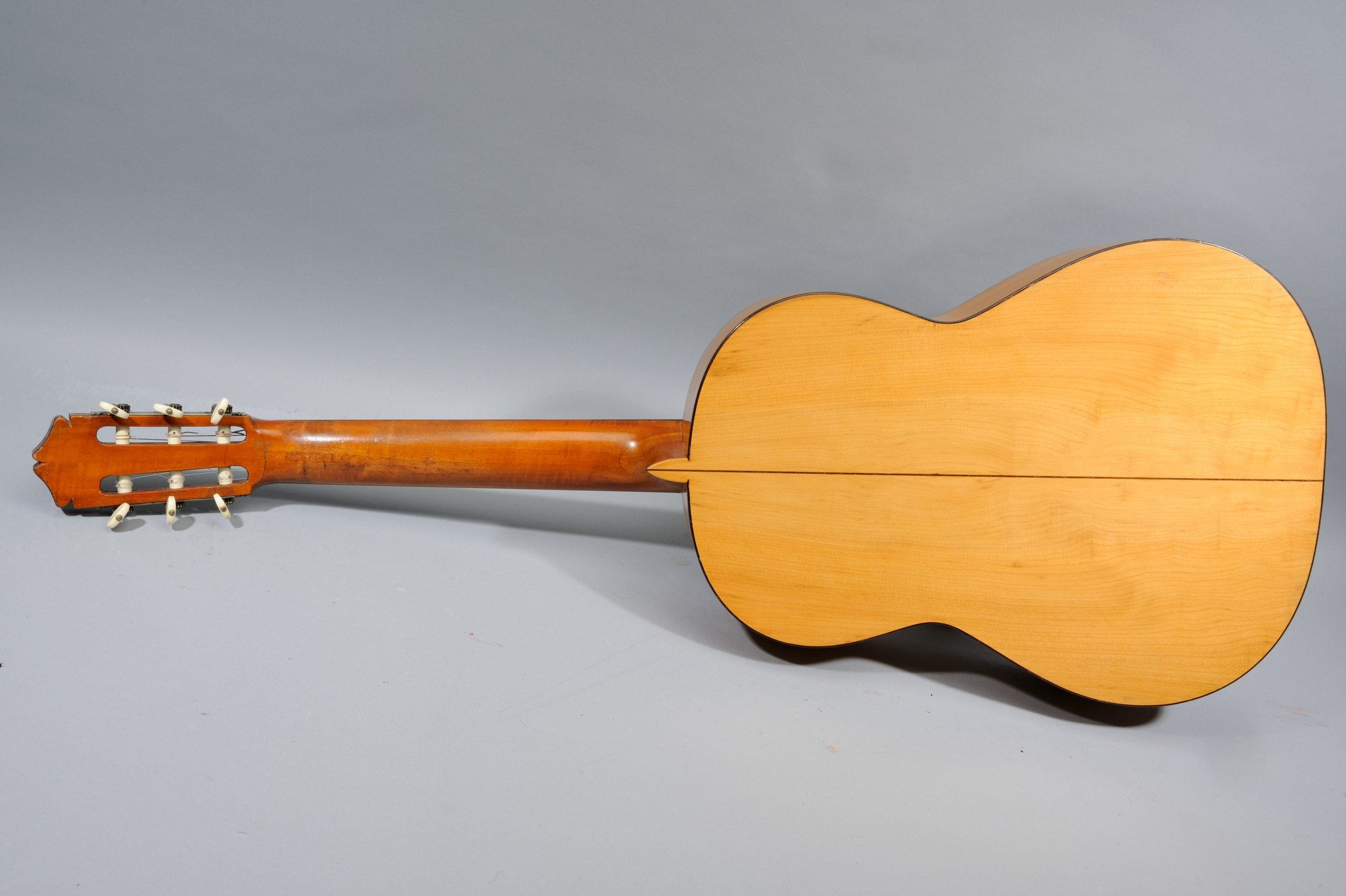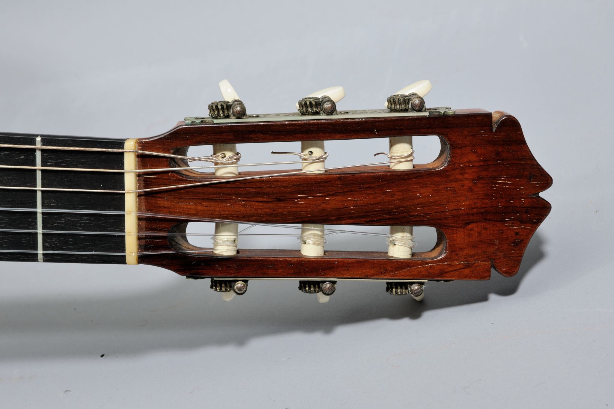 Santos Hernández was born in Madrid in 1873. In 1905, he was hired by Manuel Ramírez as head of the guitar workshop, replacing Enrique García who had gone to Barcelona. Santos Hernández seems to be the luthier who built the famous guitar that Manuel Ramírez gave to Andrés Segovia in 1912. When Manuel Ramírez died in 1916, Santos continued to work for his widow until 1920. In 1921 Santos opened his own workshop at 23 Aduana Street in central Madrid. He was a very reserved luthier in his arts and construction techniques and he always refused to transfer his knowledge to anyone. Great classical guitarists of the time played Santos Hernández guitars such as Luis Sánchez Granada, Regino Sainz de la Maza, Quintín Esquembre, as well as flamenco guitarists such as Ramón Montoya, Niño Ricardo, Sabicas, Esteban de Sanlúcar, Manolo de Huelva , Manolo de Badajoz, etc. After his death in 1943, his widow continued to run the shop and hired Marcelo Barbero as luthier. It is estimated that from 1916 until his death he built almost 300 guitars.