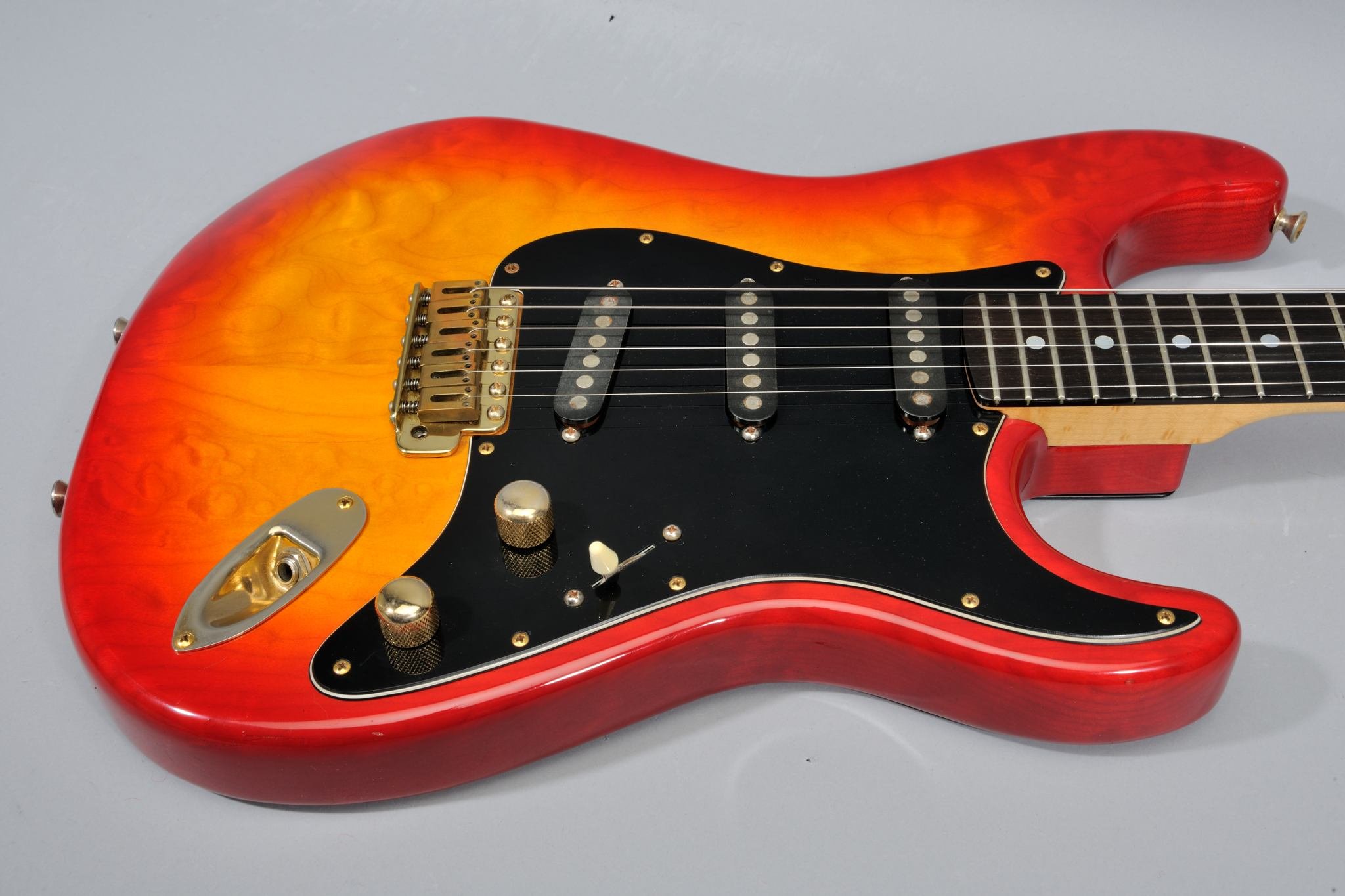 Schecter 1987 Stratocaster Maple in Heritage Cherry Sunburst Finish.