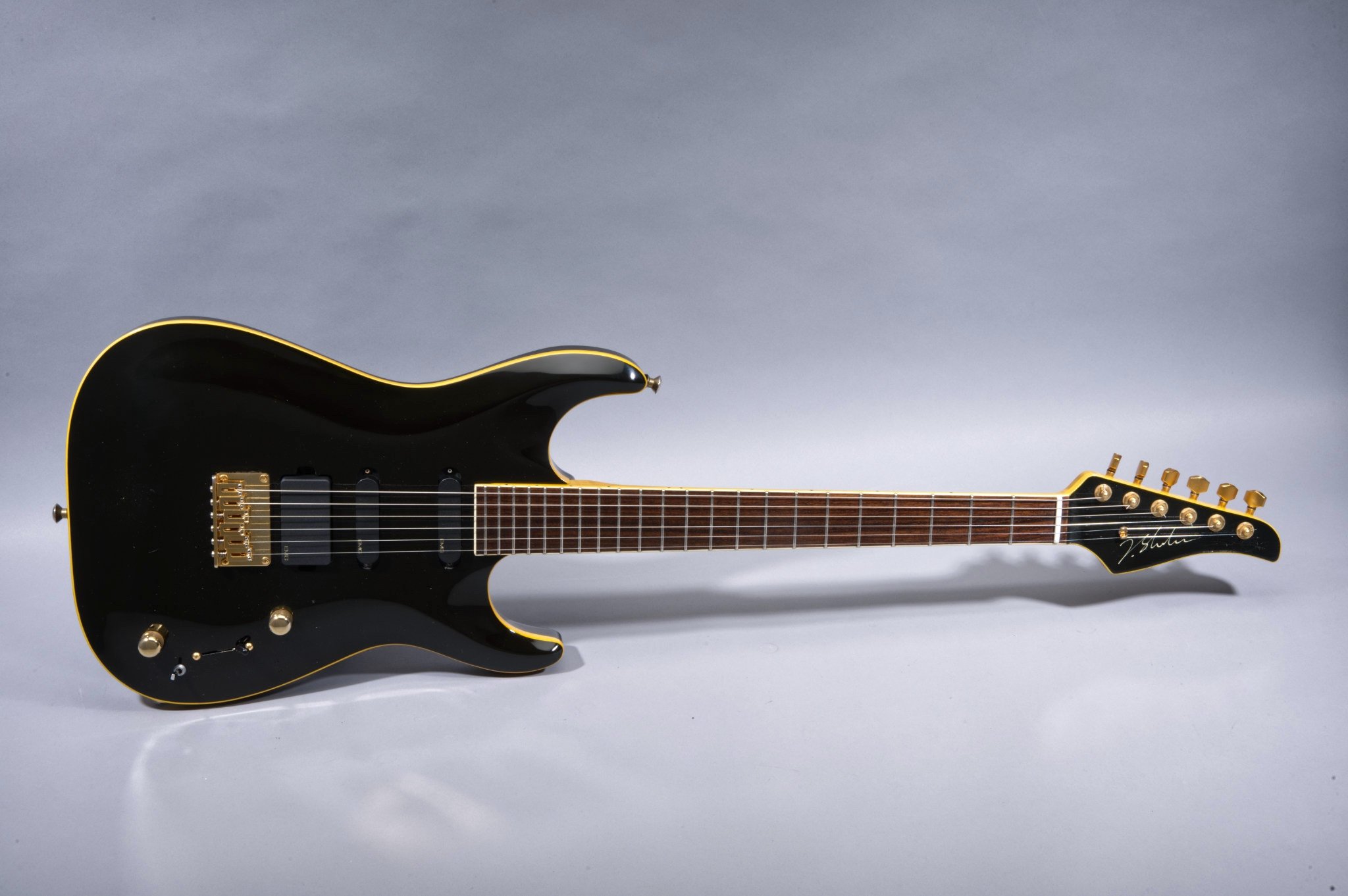 John Shuker 2005. MK Style Carved Top in Glossy Black Finish with Matching Headstock.
