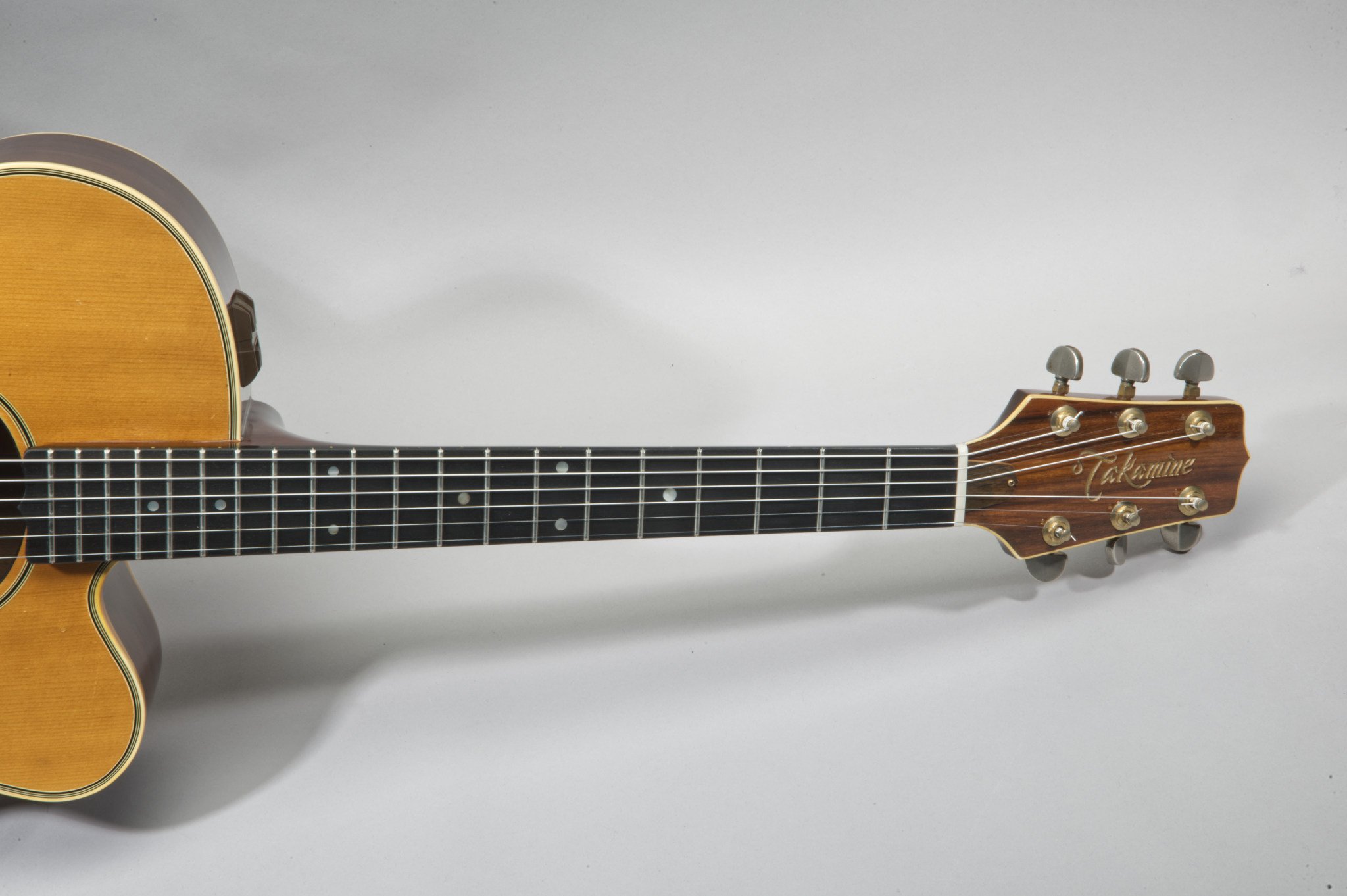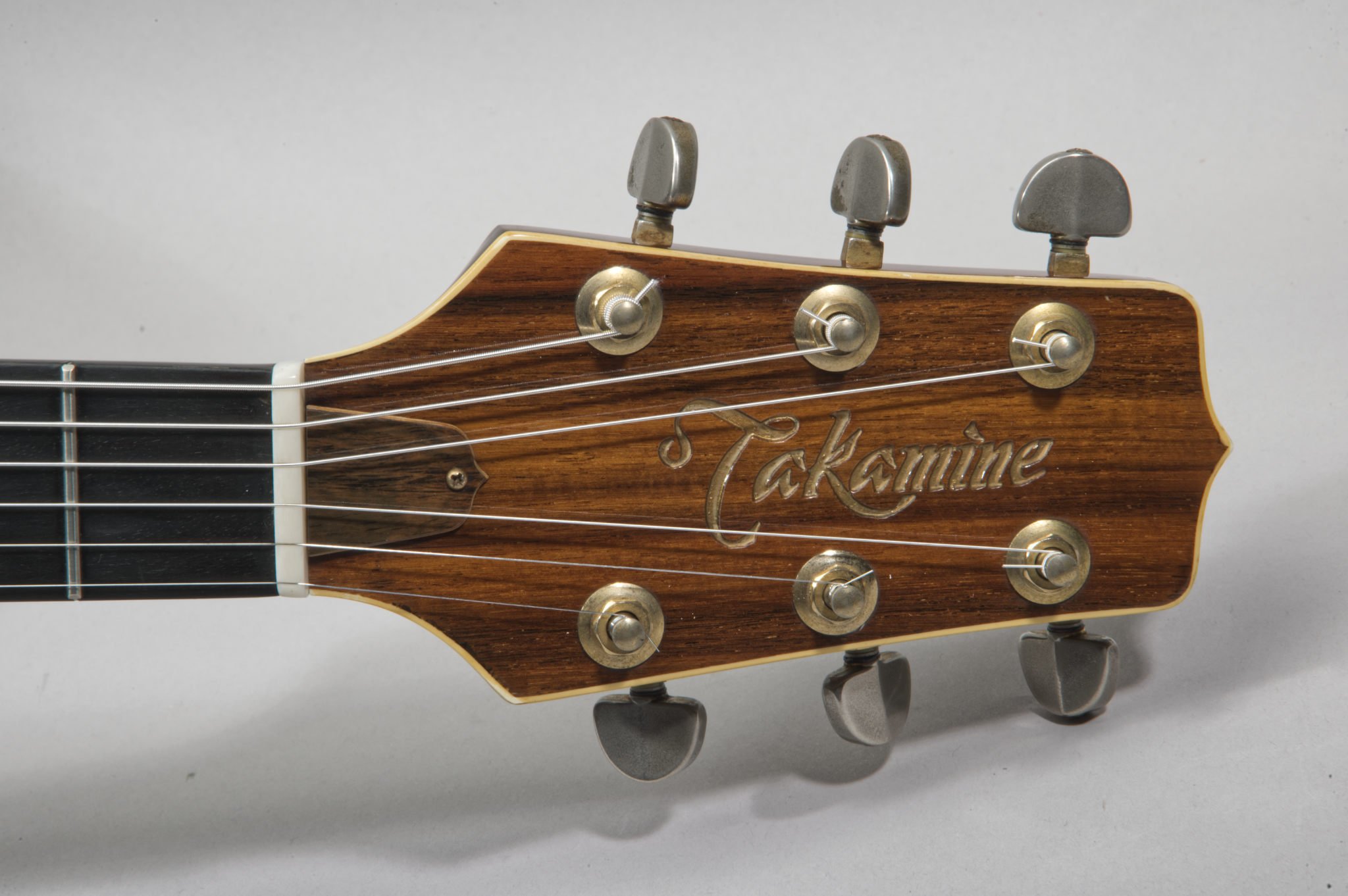 Bound Headstock with Rosewood Overlay Engraved with the Takamine Logo in Gold.