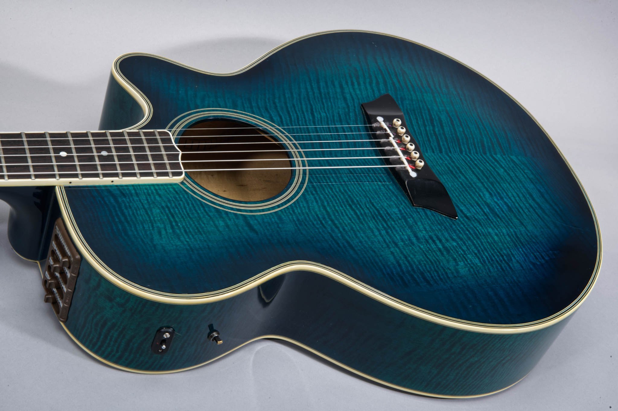 Takamine 1988. EF-391MB S in Translucent Turquoise Burst Finish with Matching Headstock.