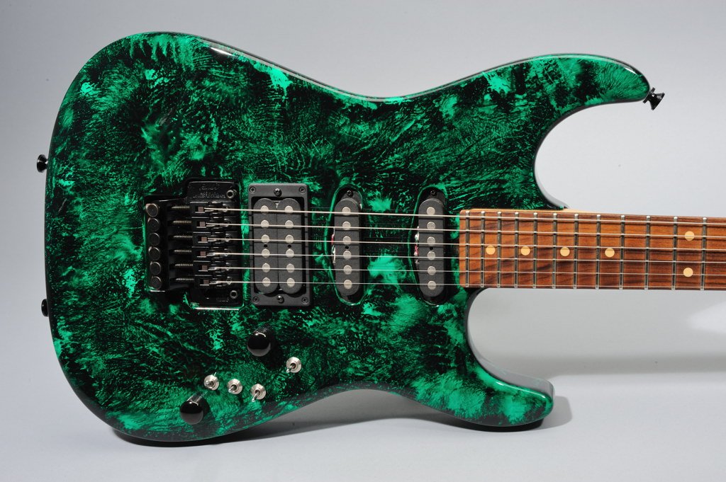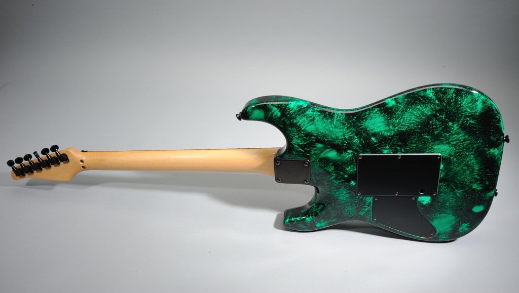 Tom Anderson 1991. Pro Am Custom in Green-Black Bowling Ball Finish with Black Painted Headstock.