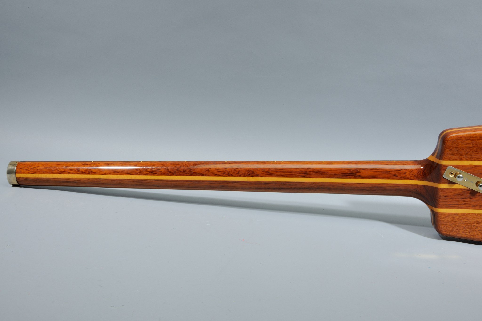 Nobby Meidel was absolutely pragmatic in the design phase of the new bass: he basically sawed off the headstock and lateral designs of the body to unmistakably make clear how he imagined the ideal headless electric bass. The Warwick boss himself created the hardware design and electronics; he even drew the schematics for the prototype. The brass parts were supplied by metal turner Walter Zeitler from Röslau, the rosewood came from a local lumber dealer, the 3-D bridges from Schaller in the town of Feucht, the pickups from Shadow in the town of Erlangen and the instrument’s finish was done at a specialty shop in the town of Eltersdorf. That’s how shortly thereafter a novel instrument, completely built in the Franconia region of Germany, came to market.