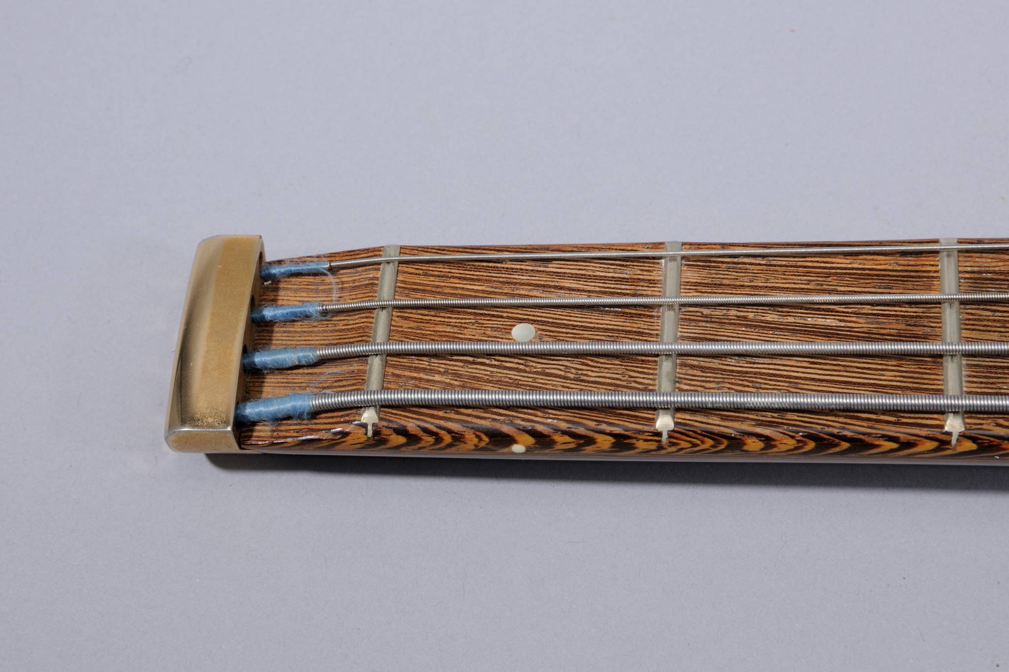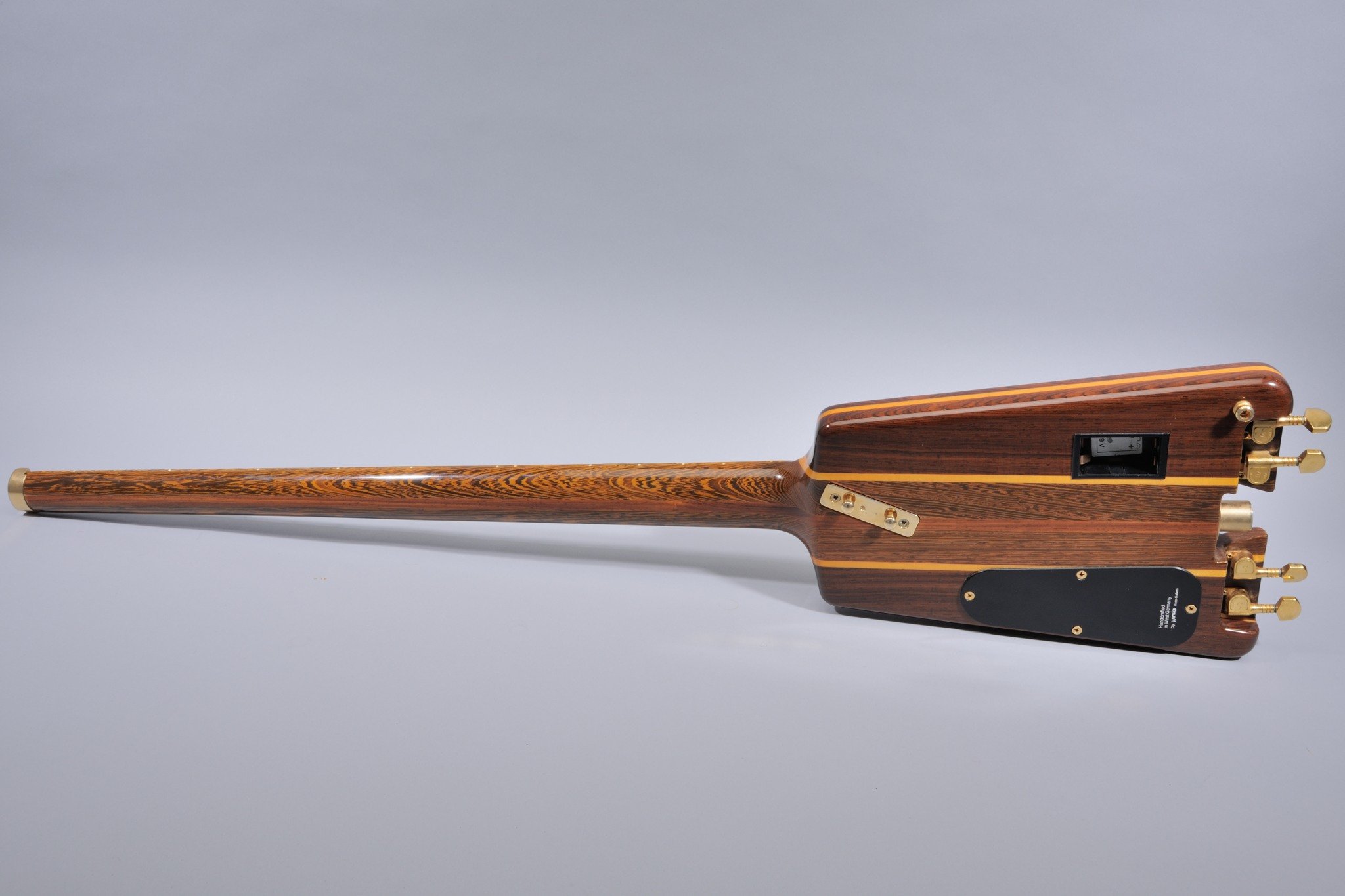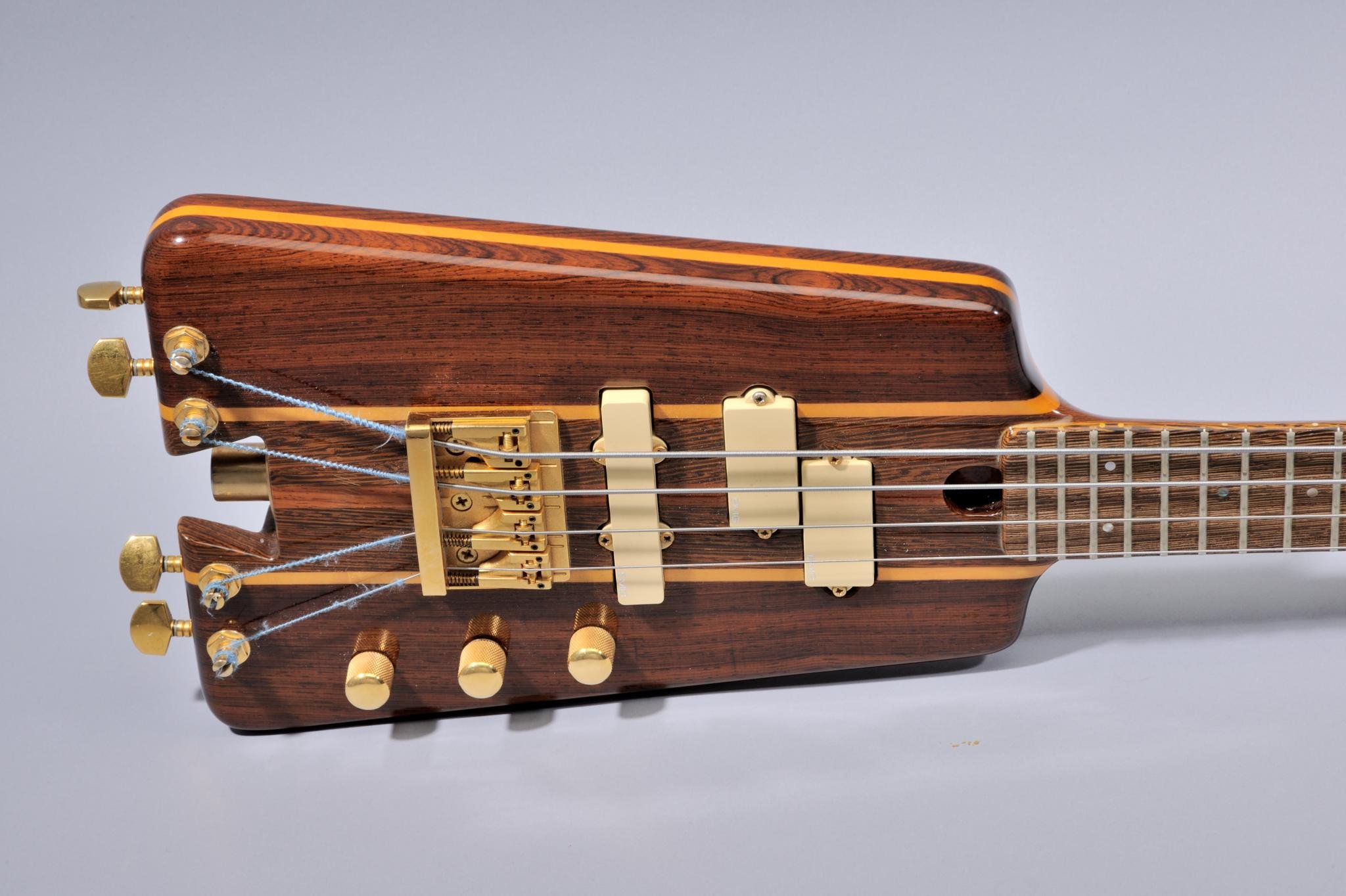 Nobby Meidel was absolutely pragmatic in the design phase of the new bass: he basically sawed off the headstock and lateral designs of the body to unmistakably make clear how he imagined the ideal headless electric bass. The Warwick boss himself created the hardware design and electronics; he even drew the schematics for the prototype. The brass parts were supplied by metal turner Walter Zeitler from Röslau, the rosewood came from a local lumber dealer, the 3-D bridges from Schaller in the town of Feucht, the pickups from Shadow in the town of Erlangen and the instrument’s finish was done at a specialty shop in the town of Eltersdorf. That’s how shortly thereafter a novel instrument, completely built in the Franconia region of Germany, came to market.