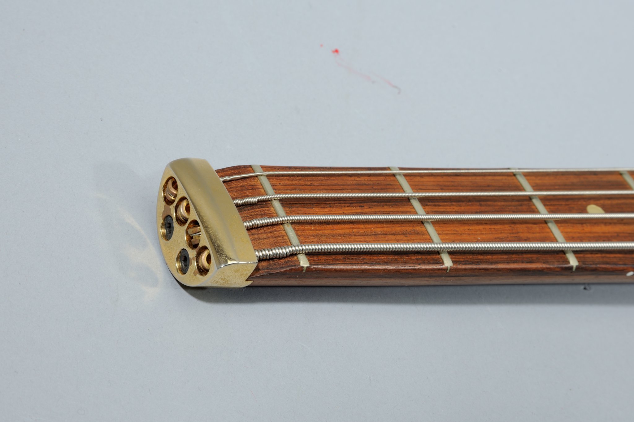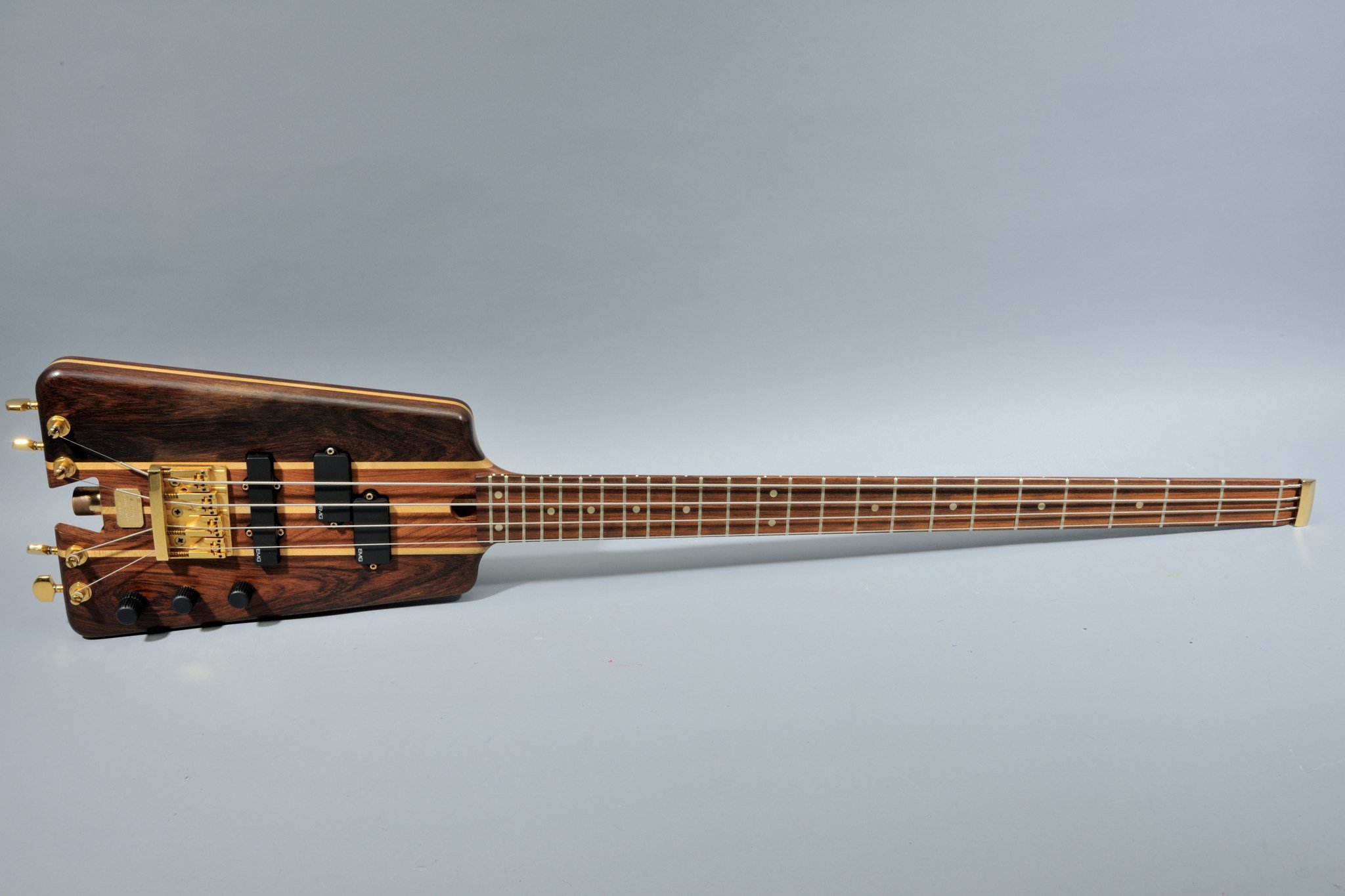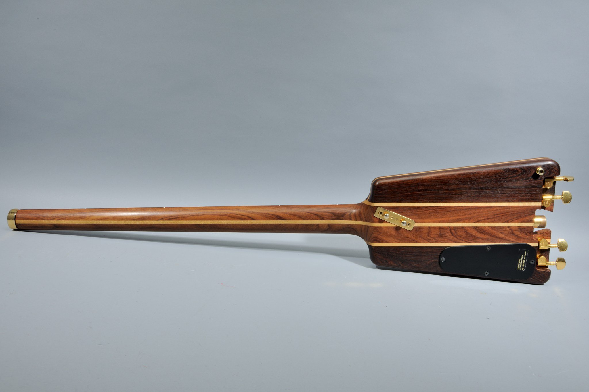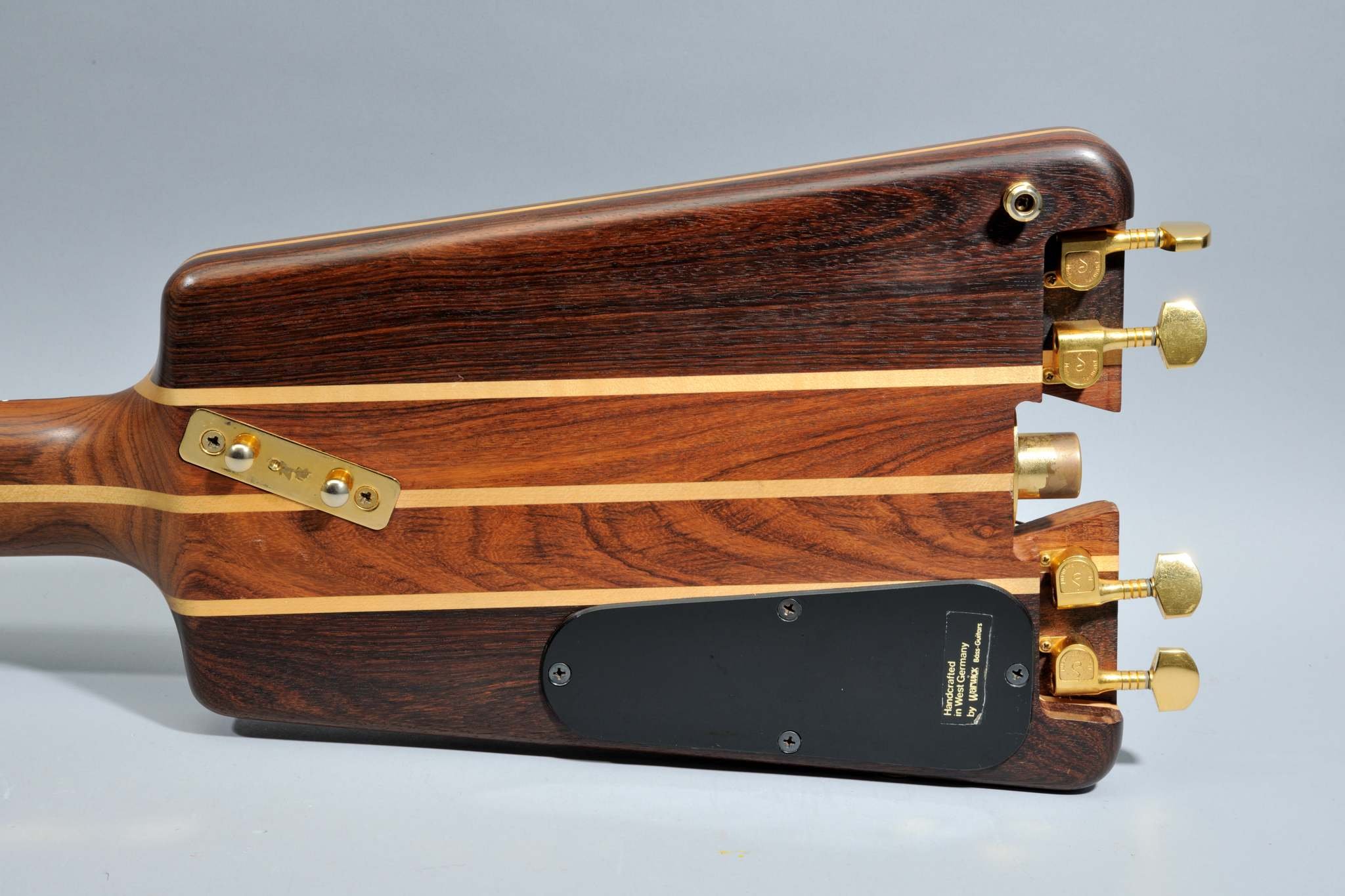 Nobby Meidel was absolutely pragmatic in the design phase of the new bass: he basically sawed off the headstock and lateral designs of the body to unmistakably make clear how he imagined the ideal headless electric bass. The Warwick boss himself created the hardware design and electronics; he even drew the schematics for the prototype. The brass parts were supplied by metal turner Walter Zeitler from Röslau, the rosewood came from a local lumber dealer, the 3-D bridges from Schaller in the town of Feucht, the pickups from Shadow in the town of Erlangen and the instrument’s finish was done at a specialty shop in the town of Eltersdorf. That’s how shortly thereafter a novel instrument, completely built in the Franconia region of Germany, came to market.