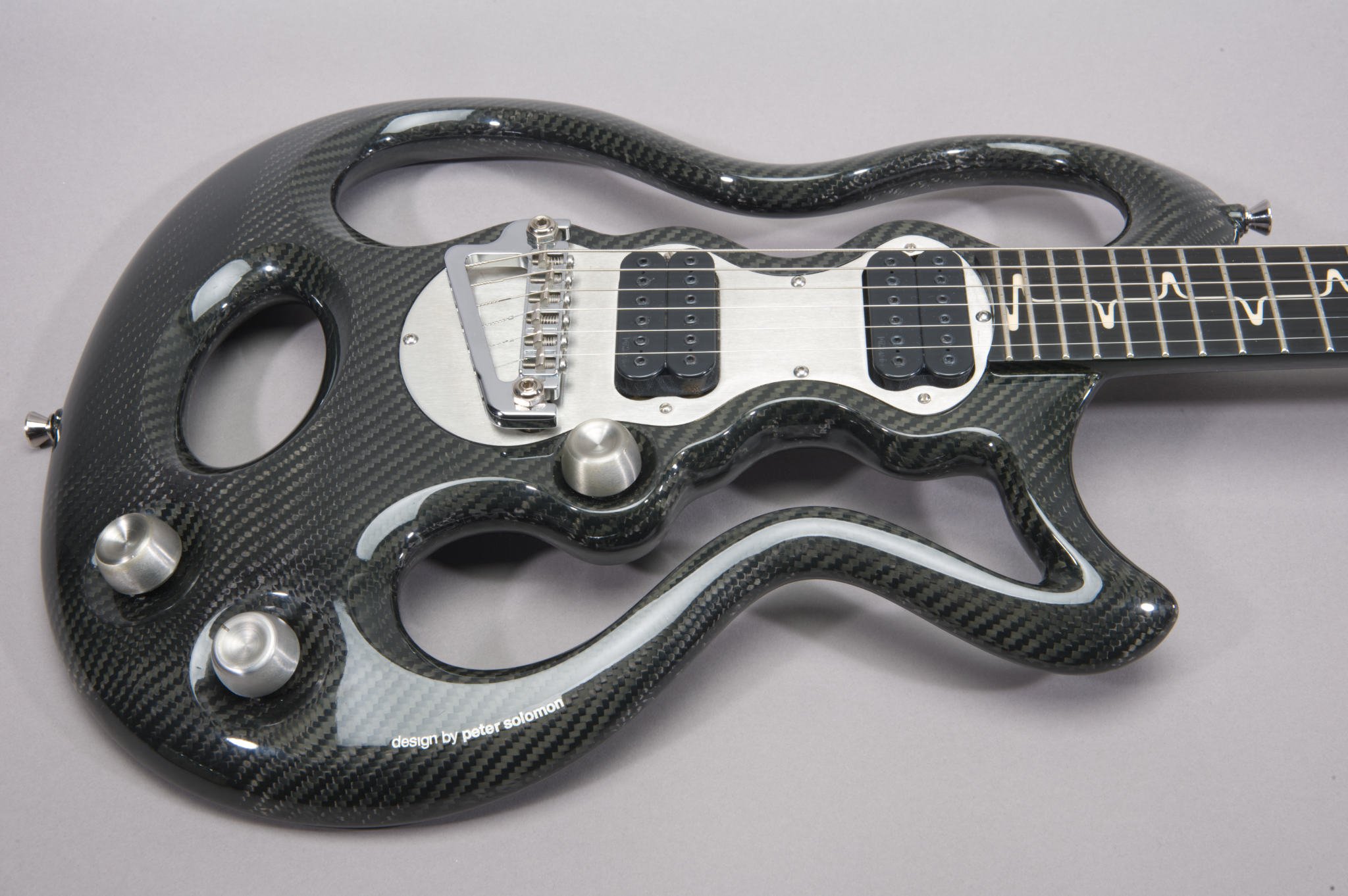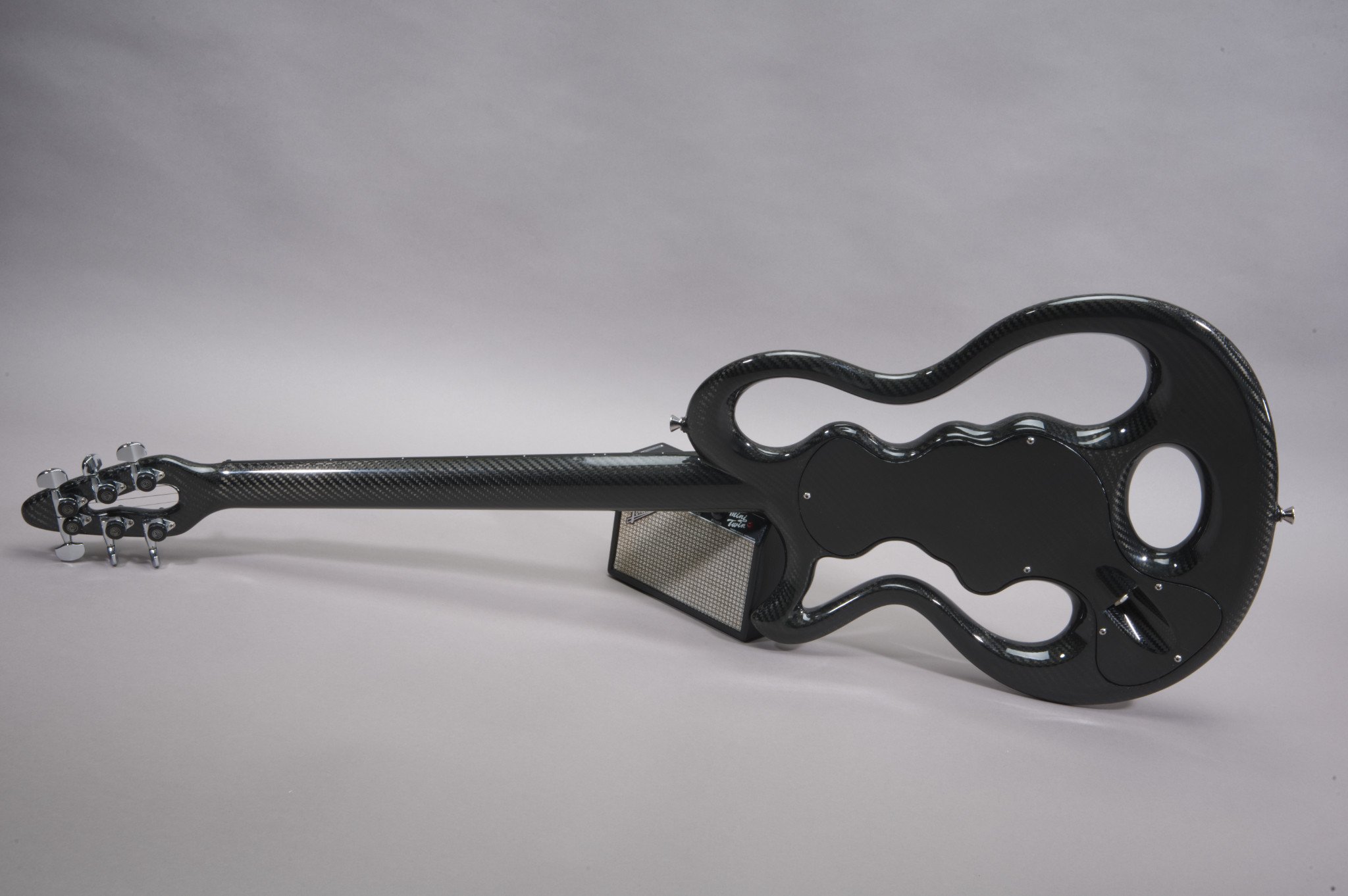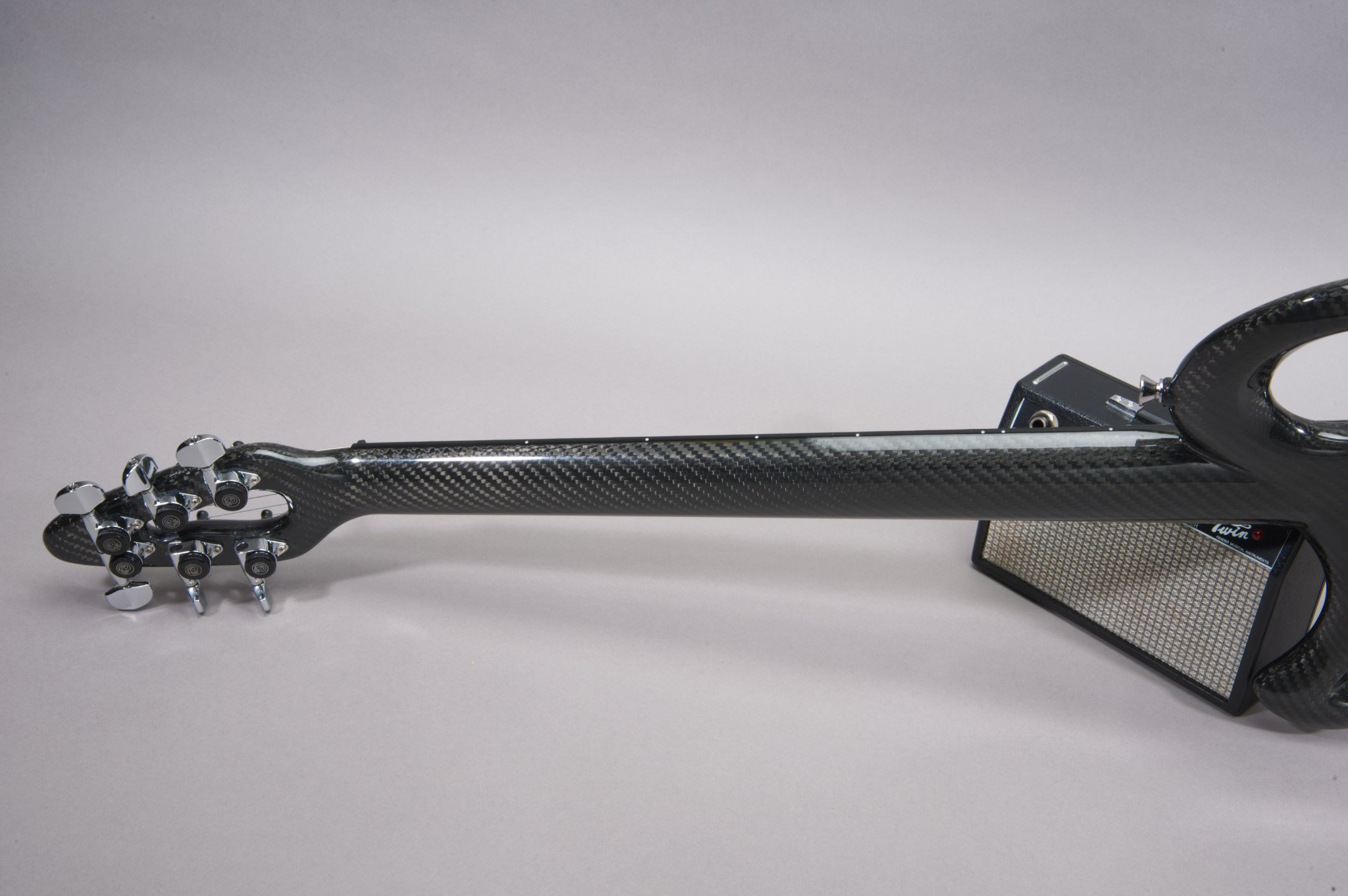 The Handle model manufactured by XOX Audio Tools was designed by Peter Salomon. The body and neck of the guitar form a hollow carbon fiber monocoque structure.