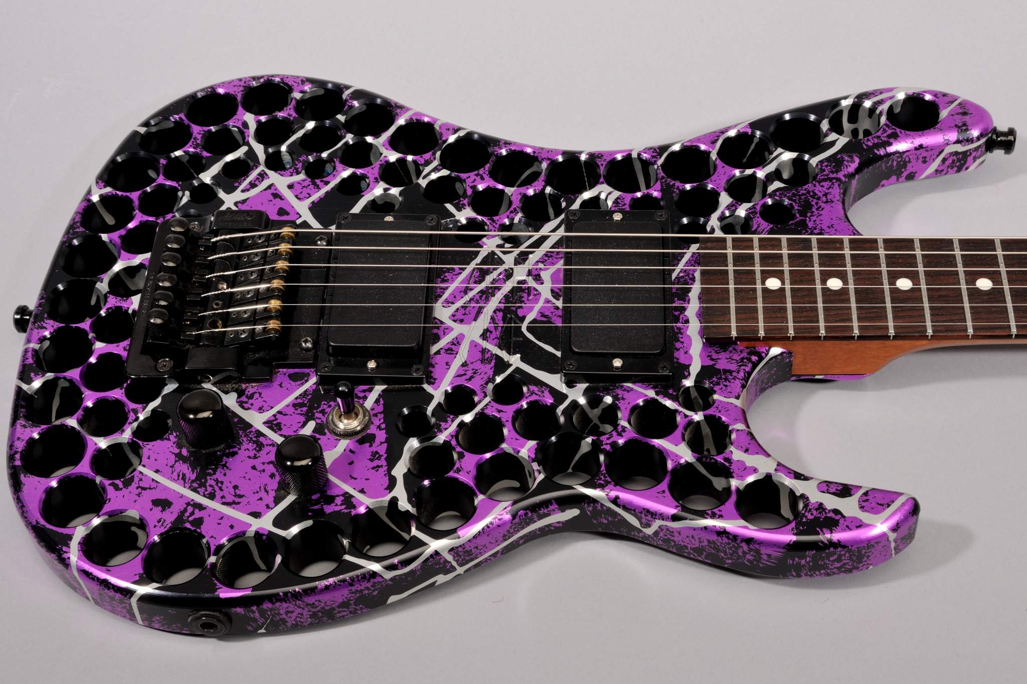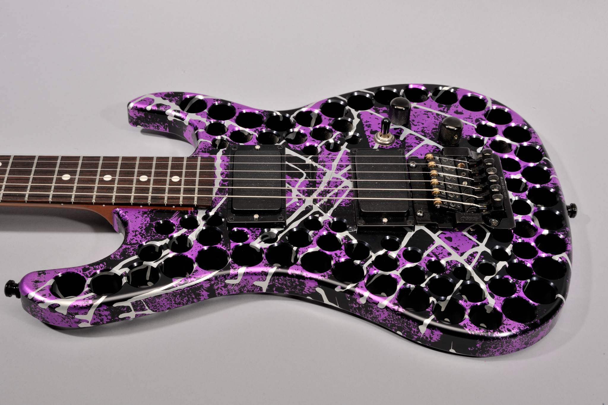 Abel Axe 1995 Aluminum Body Strat Anodized in Purple/Black/Silver Splatter.