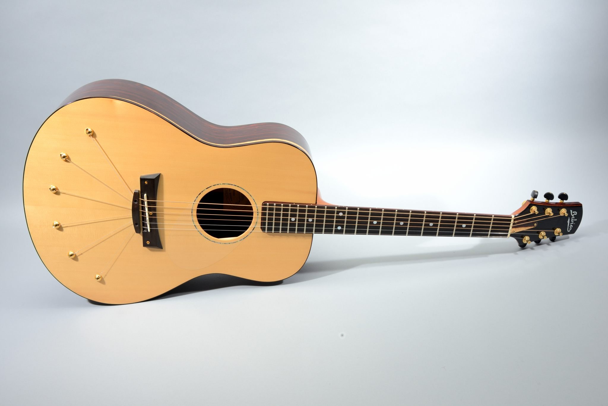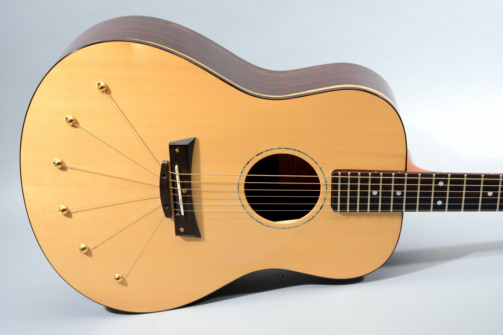 This guitar also features patented Torque Reducing Split Bridge, Continually Adjustable Neck and String Anchored Lateral Compression Soundboard.