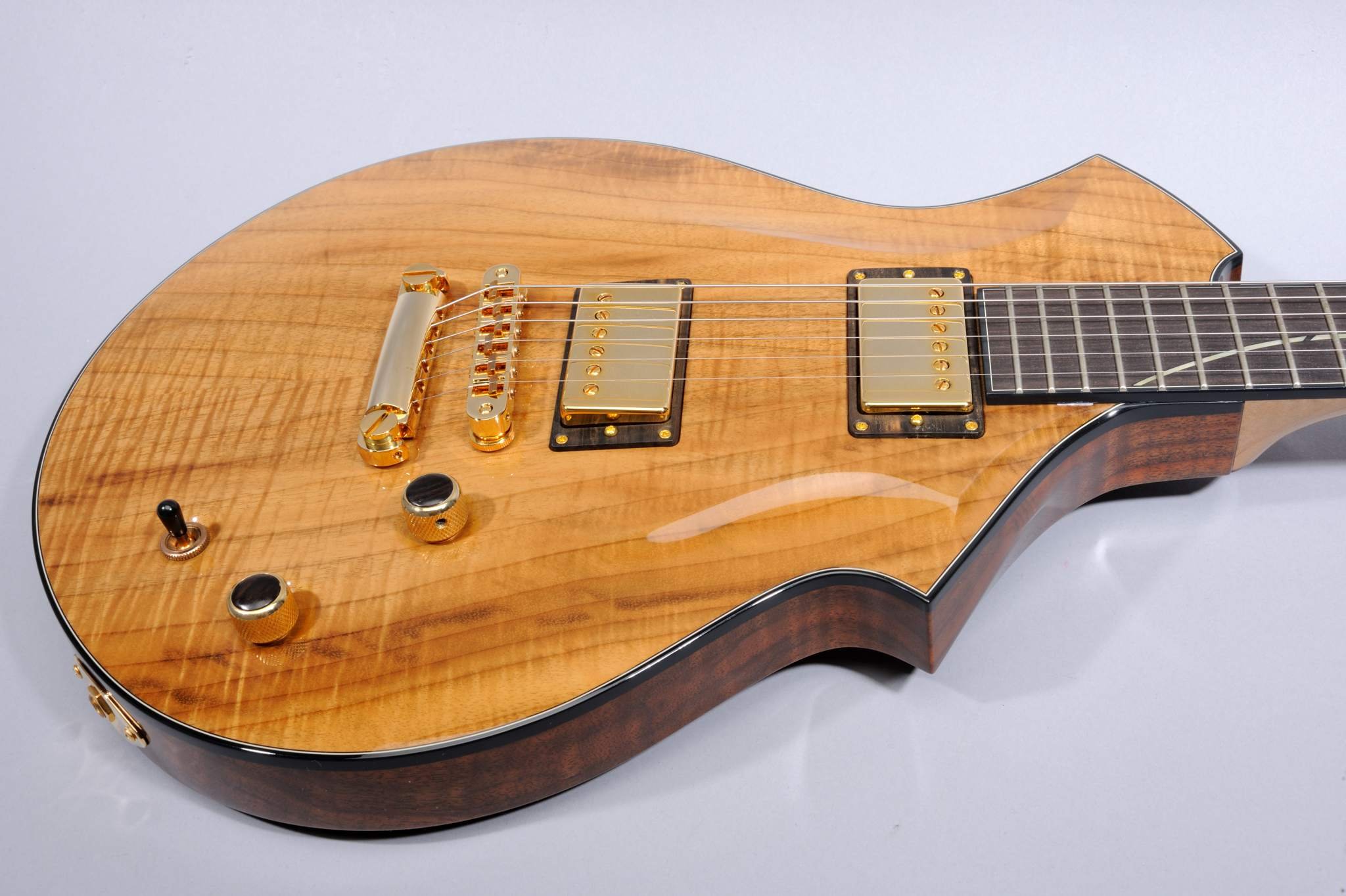 1 piece Figured Walnut Body and Control Backplate.
