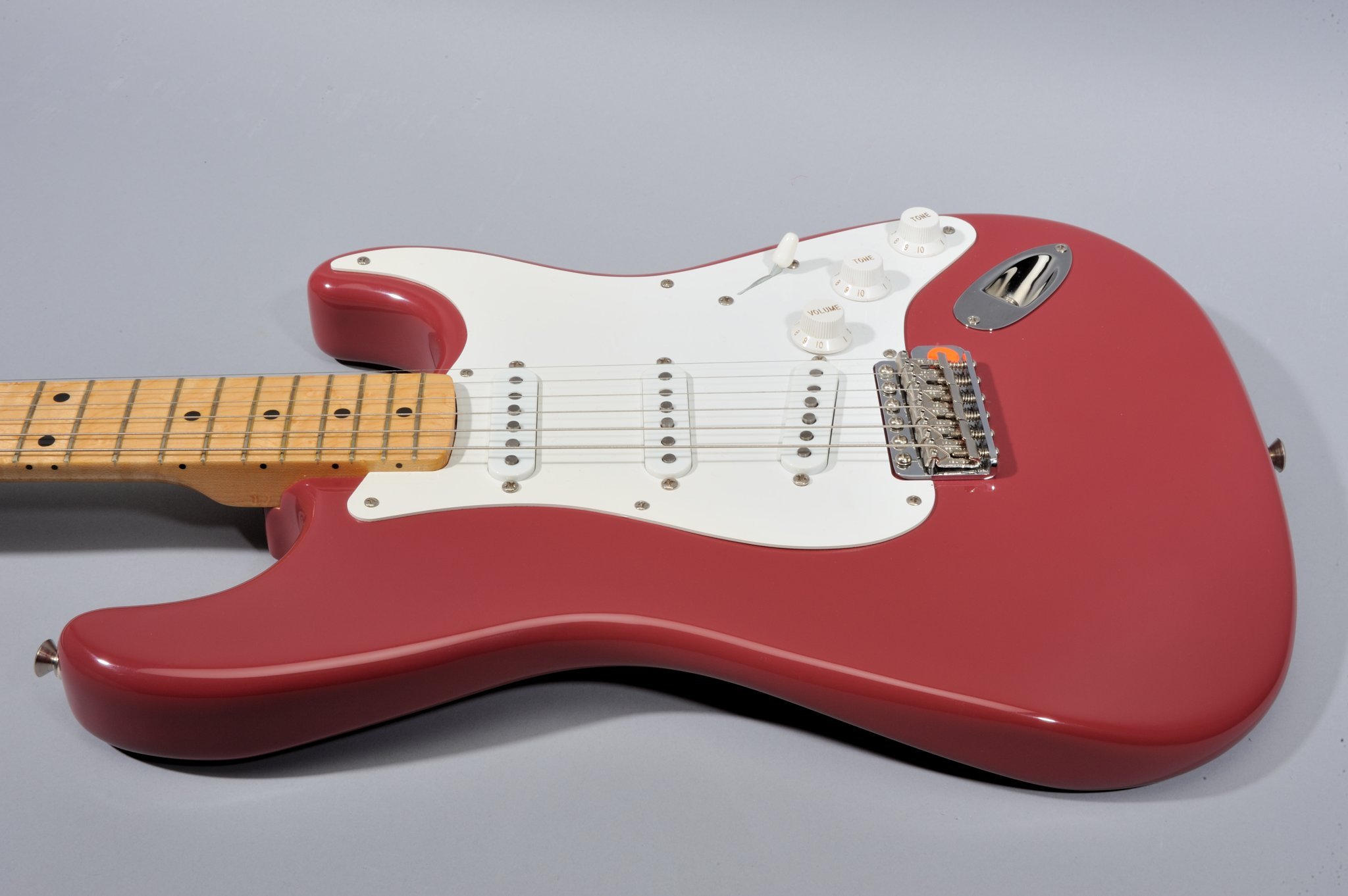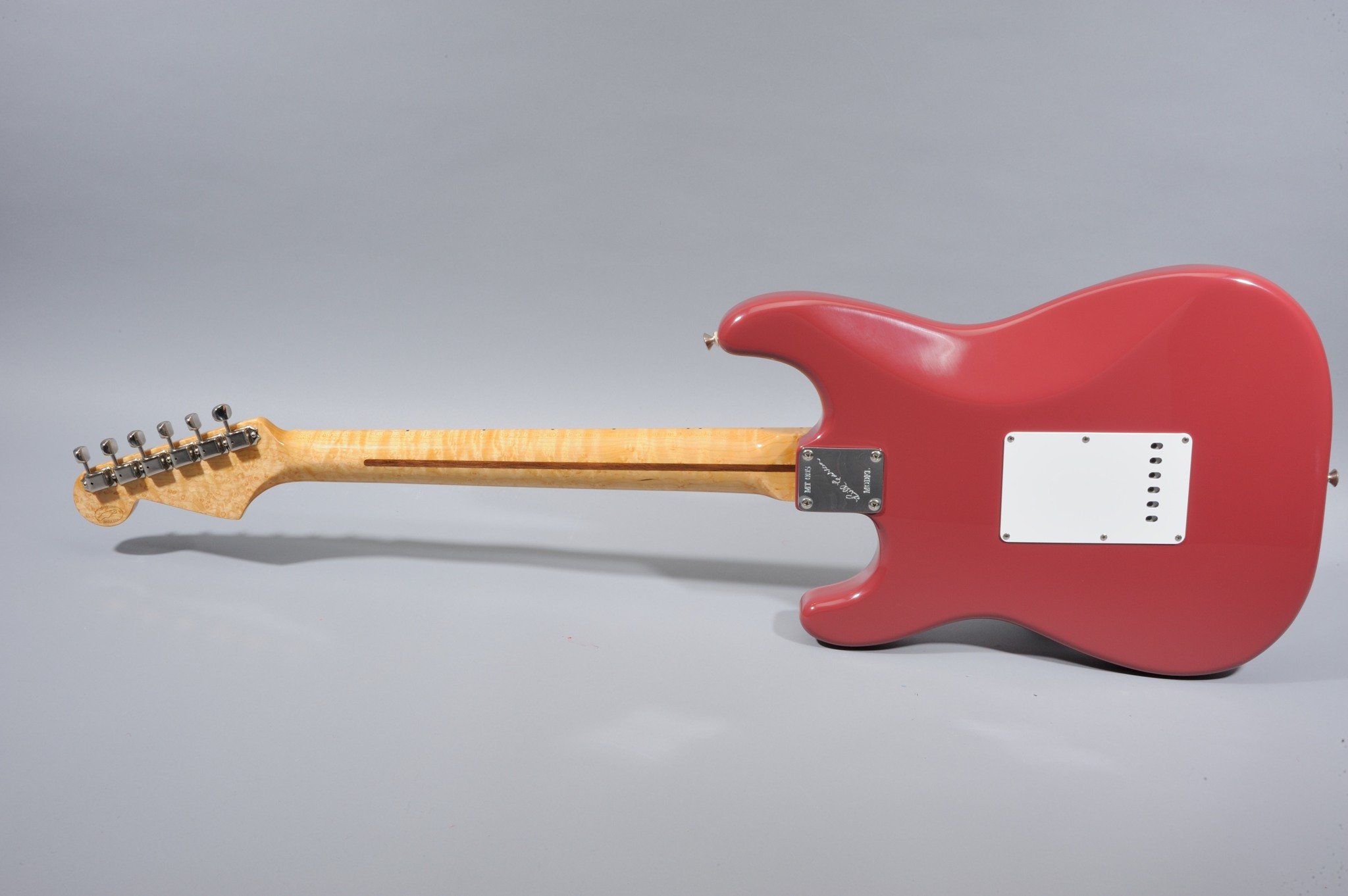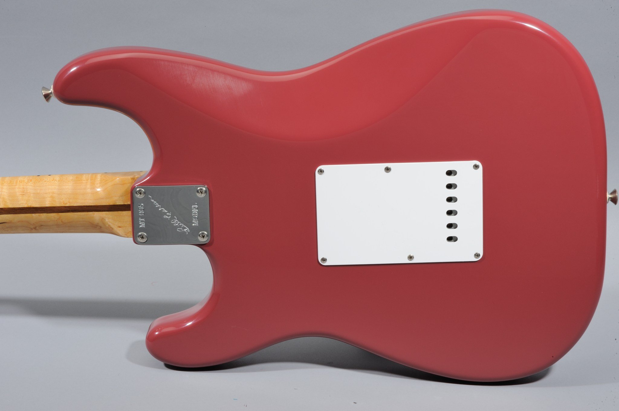 In 1992-1993 Fender made 100 of these Limited Edition Strats. As it turned out, only 41 of the original 100 Carson Strats destined for Music Trader were ever actually shipped to MT, forty right-handed models, serial numbers MT 000 through MT 039 and a single left-handed model, serial number MT 100. This is due to the fact that the bank providing the financing for the project was taken over by federal regulators in early 1992 resulting in the bank cancelling its financing for the project. Music Trader tried to continue with their own funds but this was not acceptable to Fender and Fender subsequently stopped the project in July 1992, halting and denying any further involvement in the Carson Strat by Music Trader. The initials MT on the back plates stand for Music Trader. Guitars from numbers 40 through 99 do not contain all documents, especially the one from Music Trader that is signed by Donald Schwartz stating the origin of the guitar and the history of the color of the guitar.