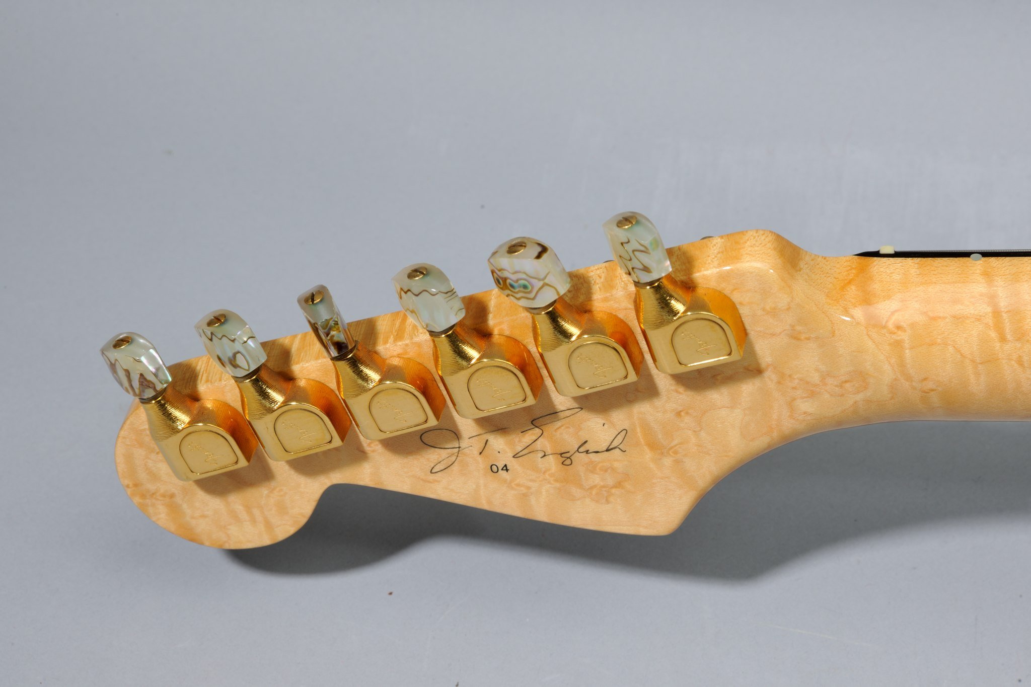 Senior Master Builder John English who passed away June 28th 2007 at the early age of 57 was raised on ‘50s and ‘60s rock ’n’ roll. He joined Fender in 1970, working alongside company pioneers such as Freddie Tavares and Bill Carson, and was a driving force in the early days of the Fender Custom Shop, helping to define the creative environment that continues in the shop to this day. One of the original Custom Shop builders, he was internationally renowned for his custom, concept and art guitars. He was a guitarist, drummer and artist who worked in the United States and Europe, and was a true original whose creations used exotic woods, metals, plastics, stones and bone, and were inspired by music, art, architecture and nature. He built custom guitars for countless musicians and collectors, ranging from Eric Clapton to President George W. Bush. His collaboration with surf guitar king Dick Dale resulted in one of the first Fender Custom Shop signature model guitars; he created Fender’s first Japanese signature guitar with Michiya Haruhata, and his trio of concept guitars created with art phenomenon Shag caused quite a sensation at the 2003 NAMM show.