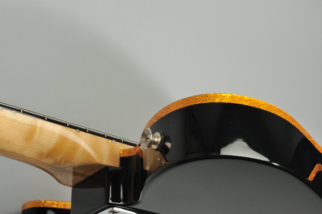 1 Piece Birdseye Maple Neck with Ebony Fretboard & Gold Sparkle Dots.