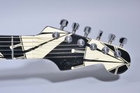 Artist Gina Schatz's guitar is a study of black and white geometric lines and circles. Schatz, currently a student of interior design, also owns the Dance & Light Studio, and leads the performance dance group "Dayim Lahib," Which means "everlasting flame." She is the lead singer of the James O Band.