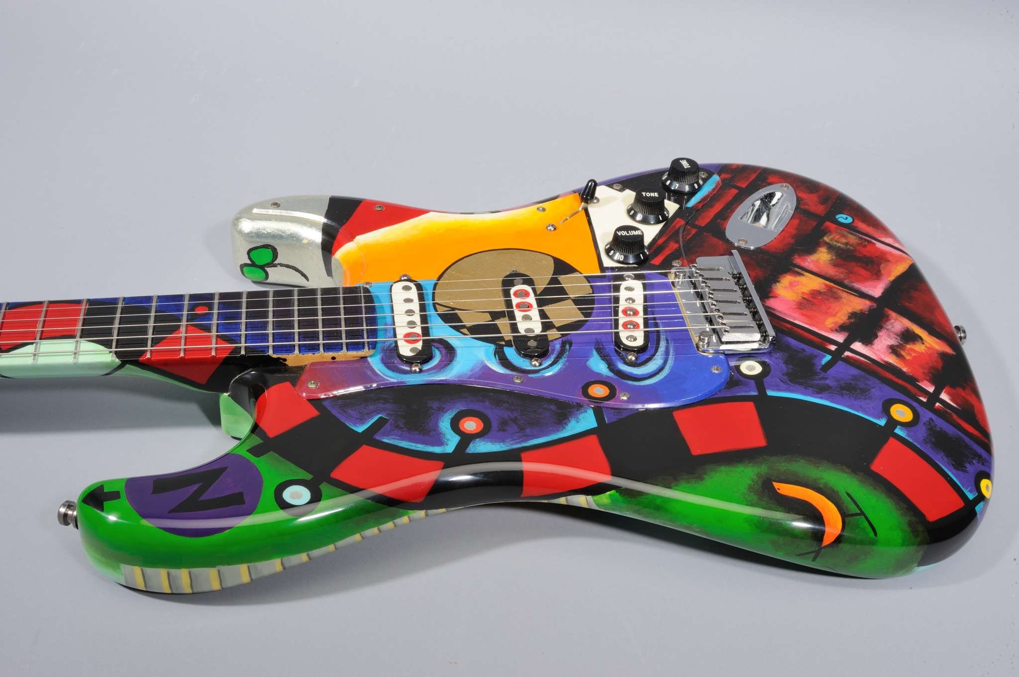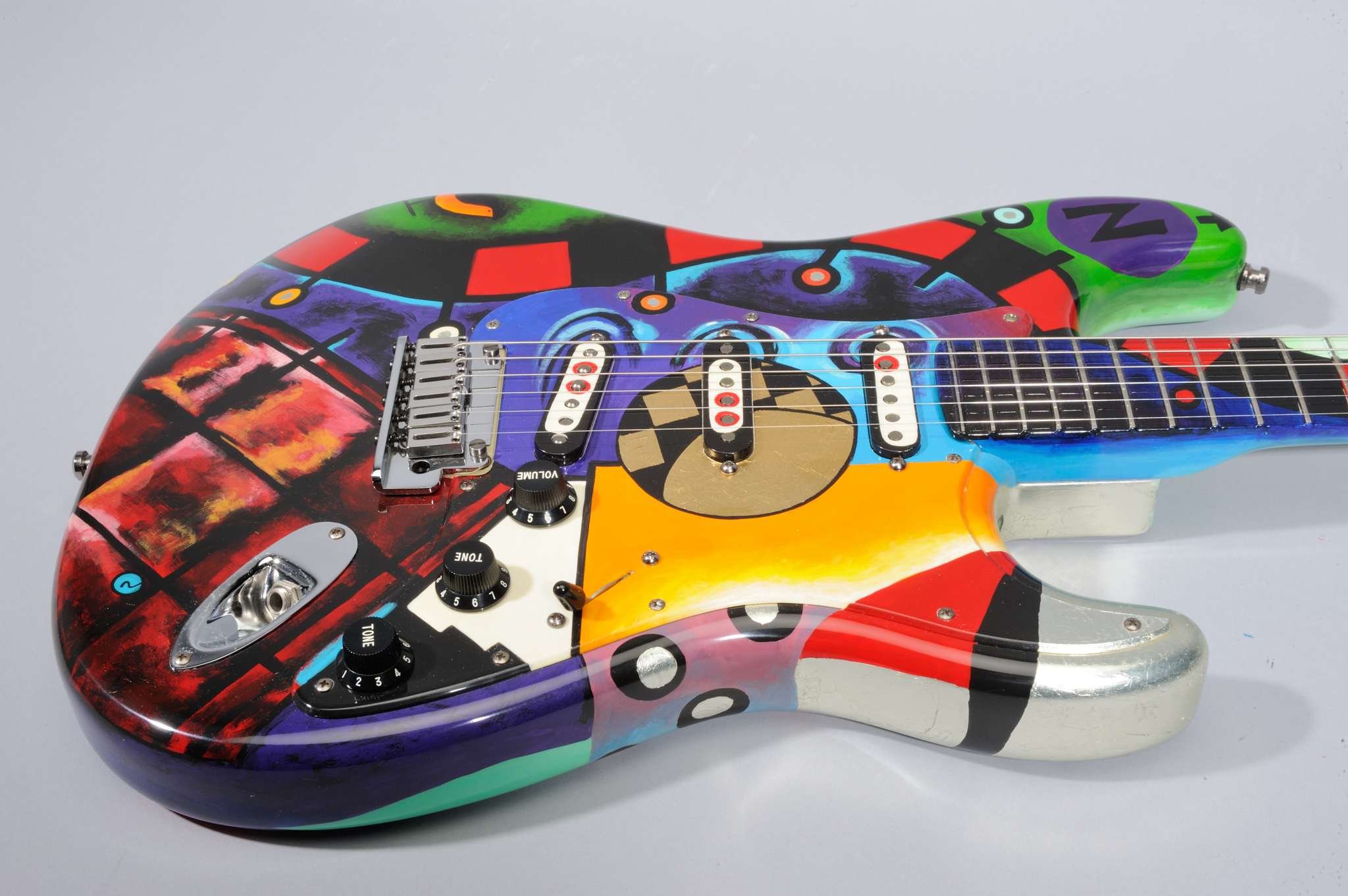 Fender 2003. Stratocaster “You Are Here” From GuitarMania Series, Artwork by Lisa Meek, Painted by Pamelina Hovnatanian ©2003.