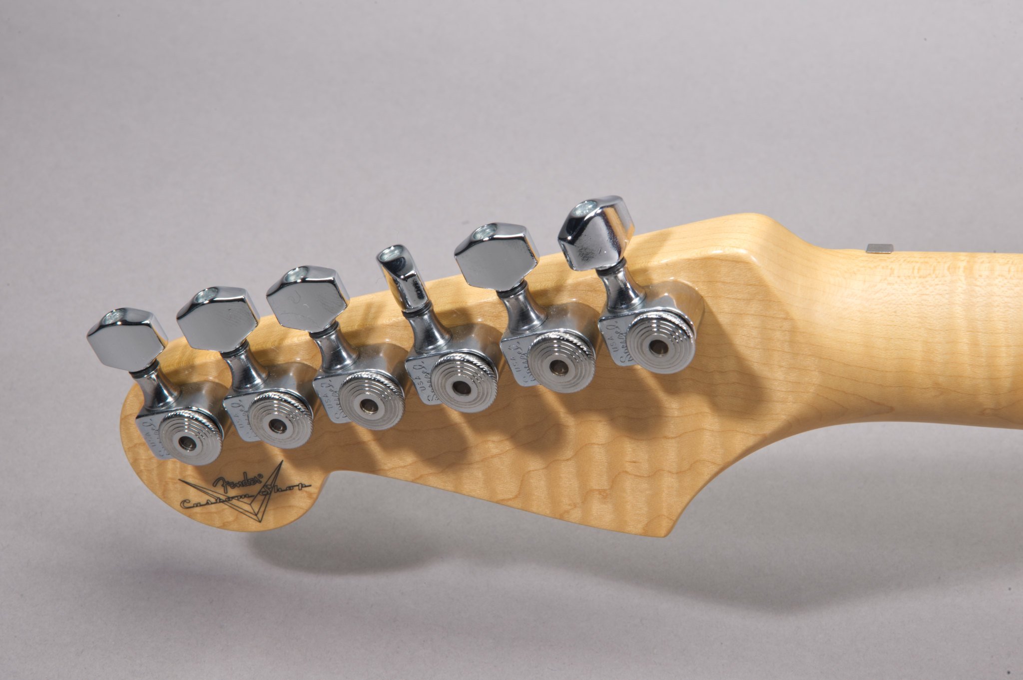 1 Piece Flame Maple Neck and Fretboard with Abalone Dots.