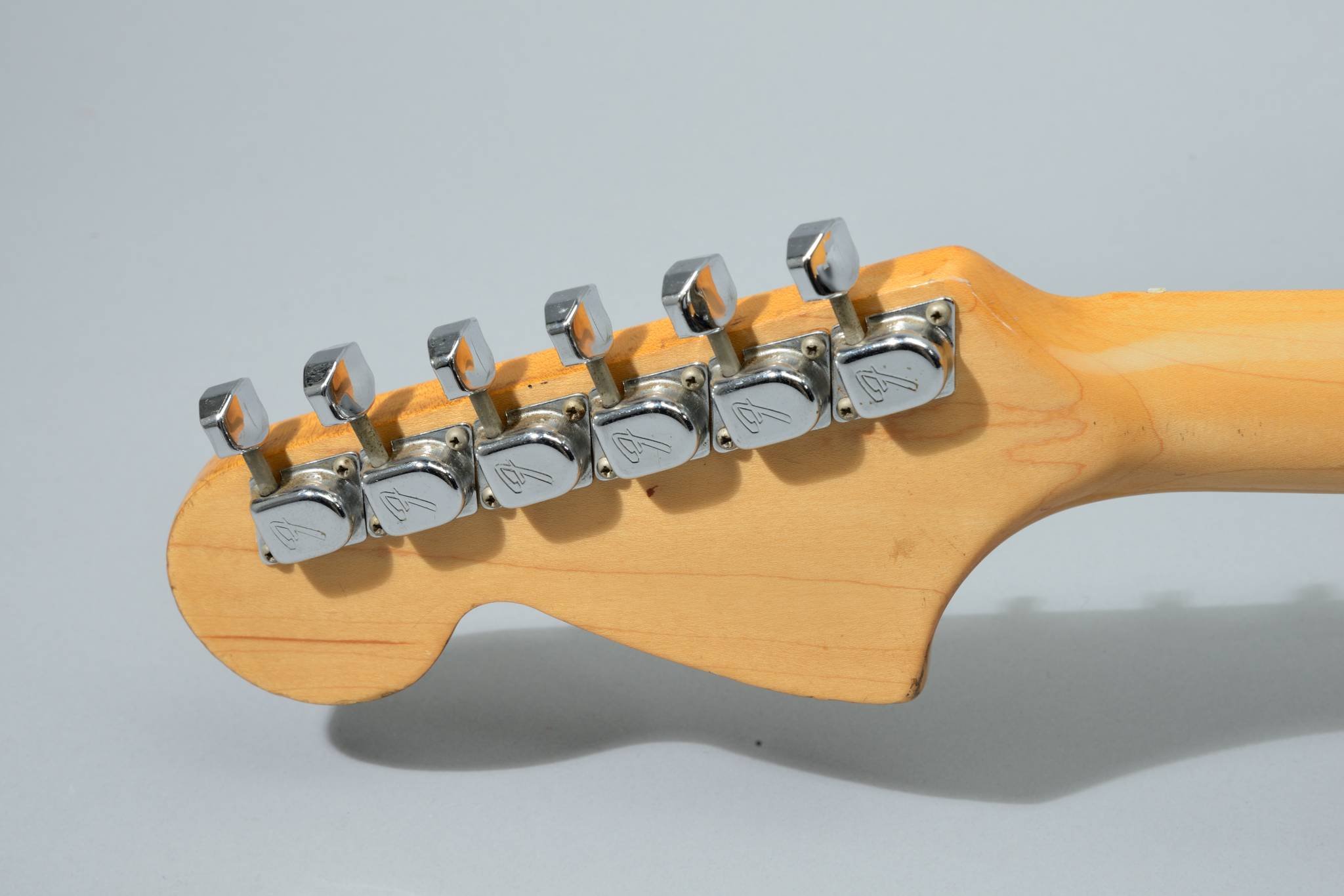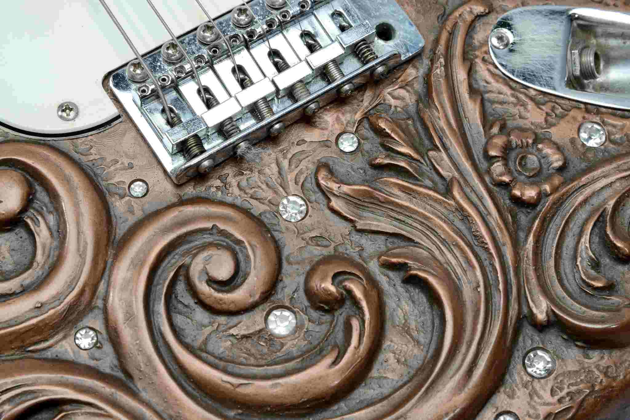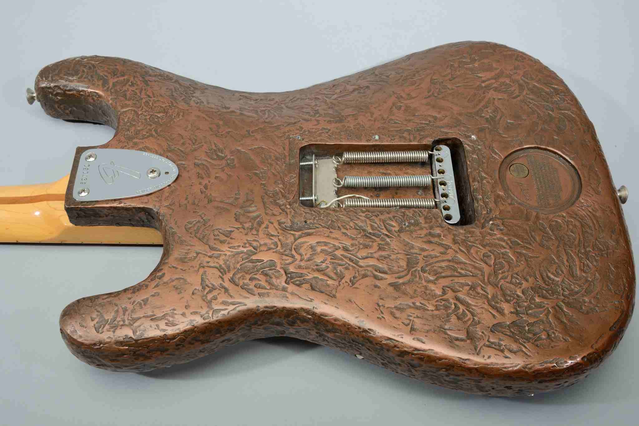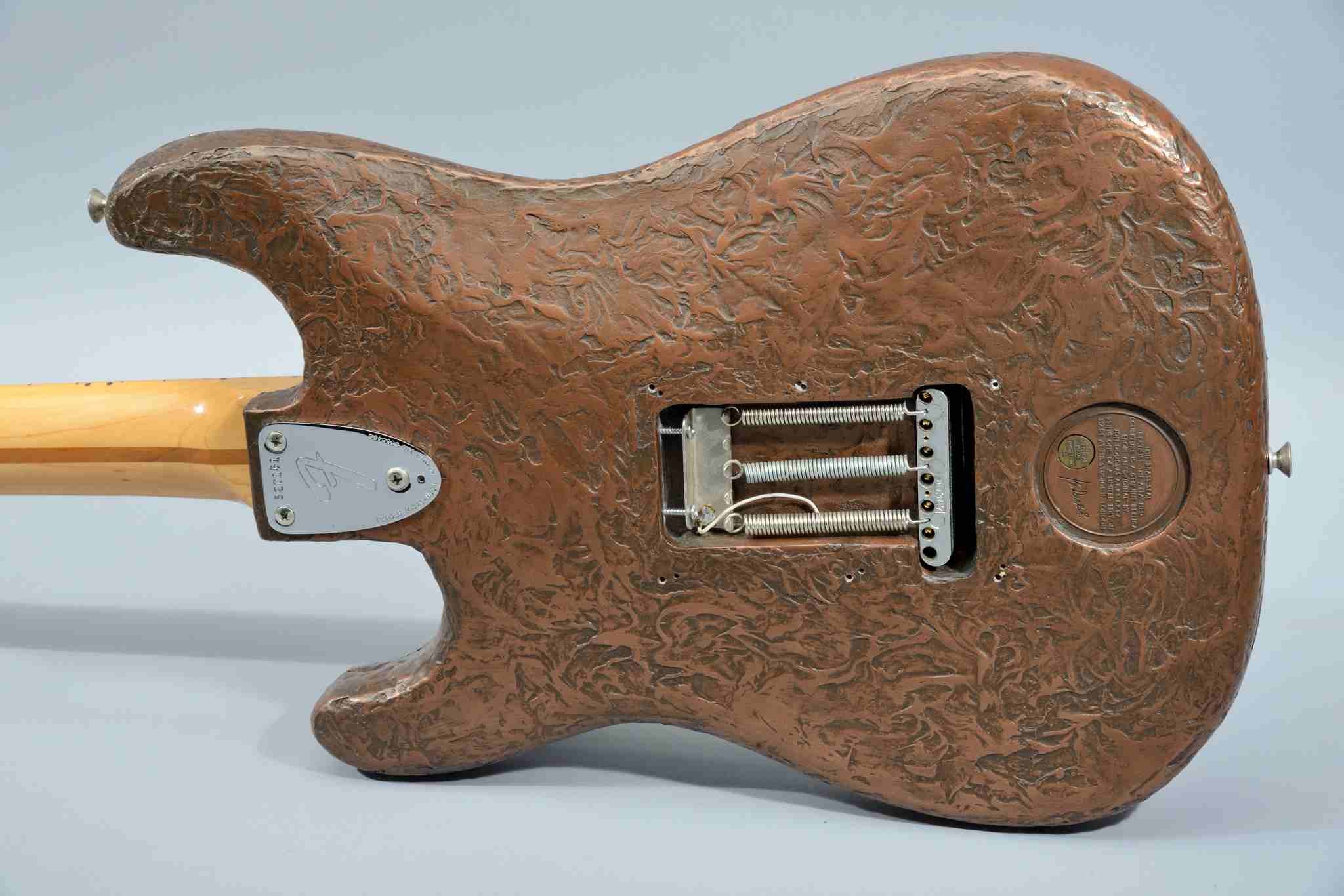 In 1975, Ivor Arbiter, the UK Fender® distributor, sanctioned Douglas to design a "non-boring Strat®". Douglas created a prototype Strat® body of cold-cast bronze, employing a metallic layer over a fibreglass shell. After a suggestion from Arbiter, Douglas set rhinestones into the body's surface providing the Legendary name “Rhinestone Strat”. Douglas used all 1975 Fender® Strat® parts.