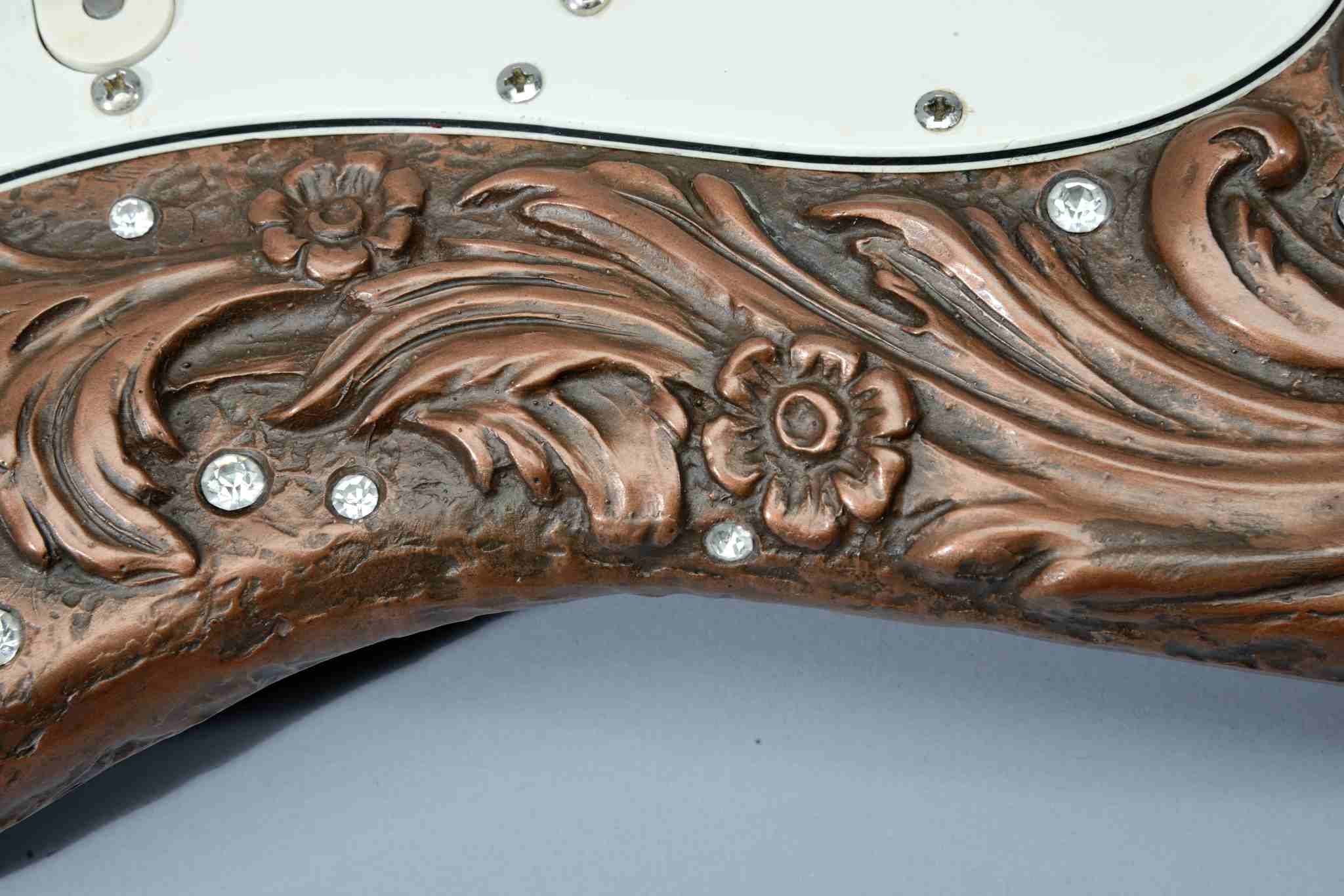In the early 1990’s Keith Smart & Jon Douglas planned to create a limited production of 50 Rhinestone Strats. Jon Douglas made fresh moulds for the further round. Each instrument with a plaque of authenticity and numbered thru 1-50 on the back near the bottom of the body. The artist's signature and “1975” are imbedded into the top above the input jack. Unfortunately Mr. Douglas died in 1995 after completing only 25 of the intended 50 guitar bodies.