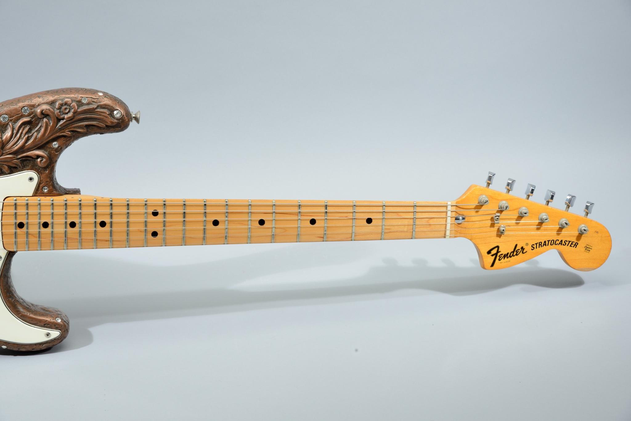 The Beatles cold cast bronze plaque and Fender Stratocaster sculpture by the artist Jon Douglas, 1964.E Serial Number 10/50.