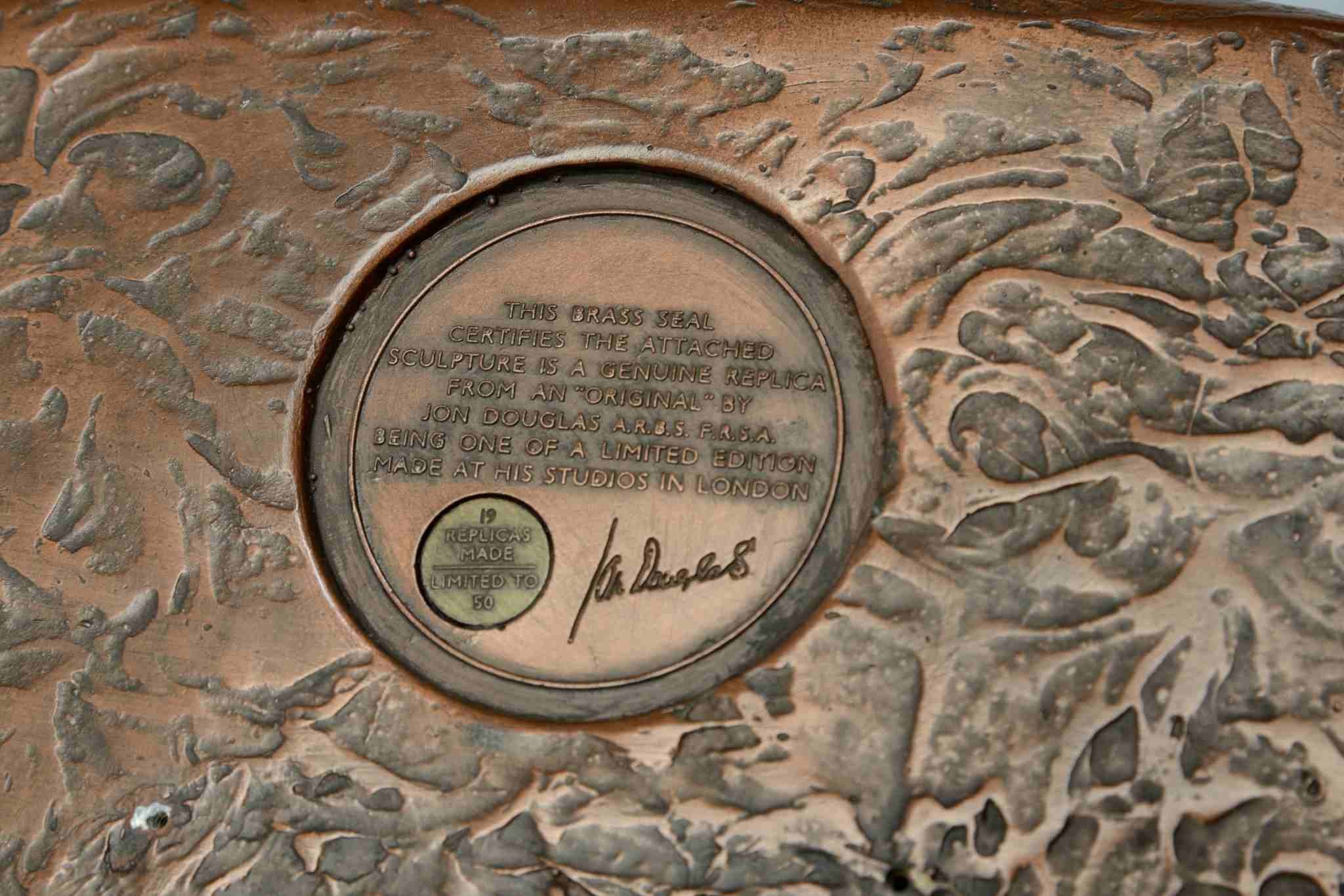 Jon Douglas was a London based sculptor whose work in '60s/'70s appeared in public places in England. He was licensed by NEMS in 1964 to produce a limited run of reproduction of his bronze plaque depicting the four members of the Beatles.