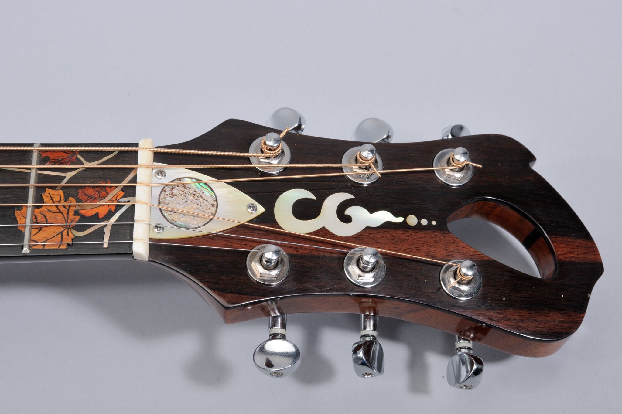 5 Piece Neck and Rosewood Fretboard with Leaves Inlays.