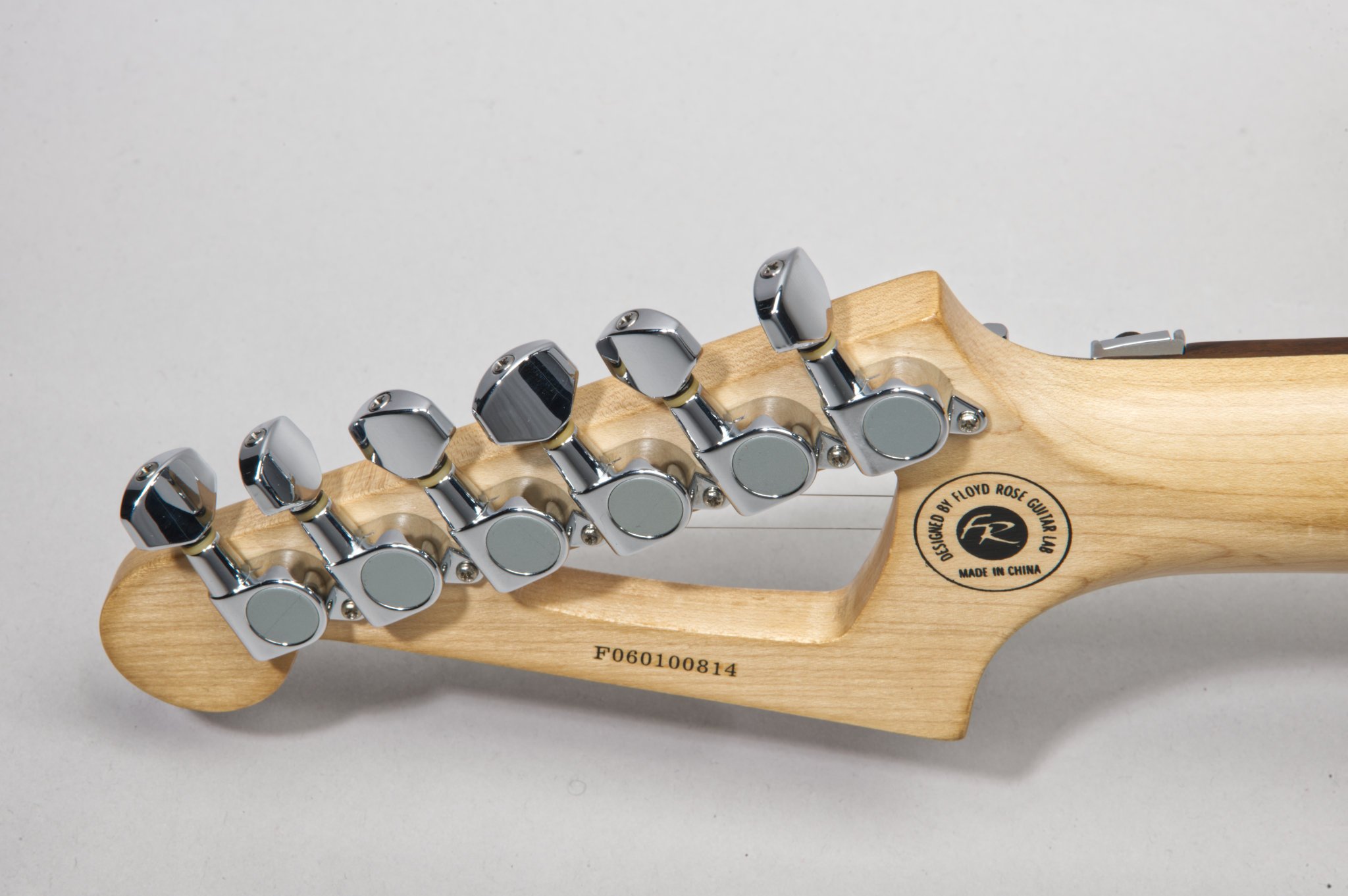 They changed the Speedloader Bridge for a Standard Floyd Rose Bridge and add Tuners on the headstock to use any manufacturer's standard guitar strings......