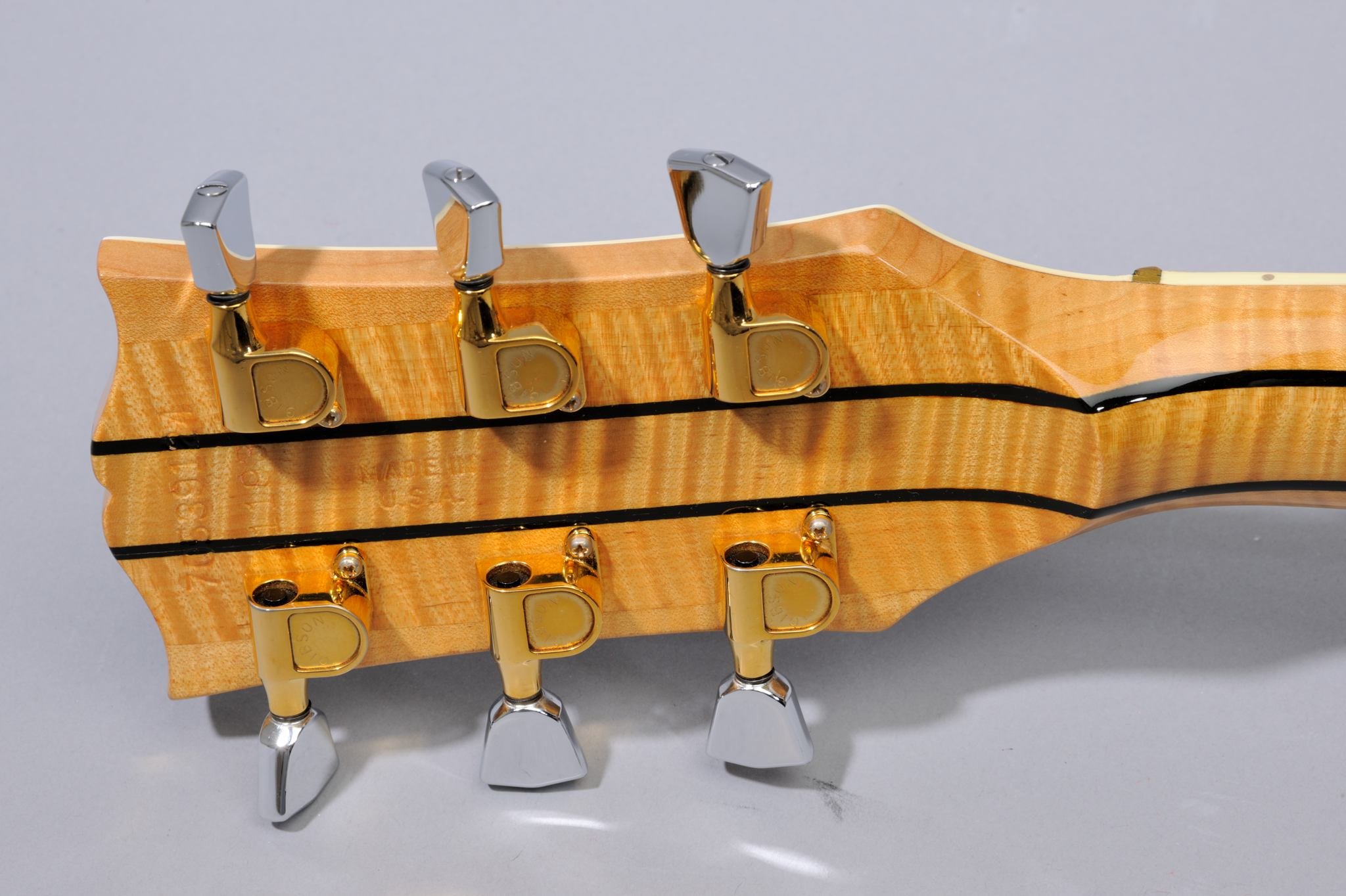 In addition to the above unique features, the 25/50 had multi-ply binding on the front and back of the body and the front of the headstock, a volute, Nashville bridge with TP-6 fine tuning tailpiece, black speed knobs, Schaller style "Gibson" tuners, and Series VII pickups. These Series VII pickups were potted with a black, rubber-like material that fills the gold covers and makes these pickups virtually impossible to remove from their covers for repair.